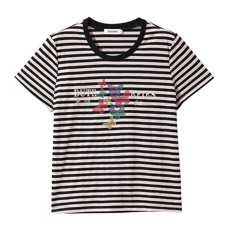 妈妈短袖t恤女 新款2025夏装减龄体恤半袖小衫中老年洋气条纹上衣