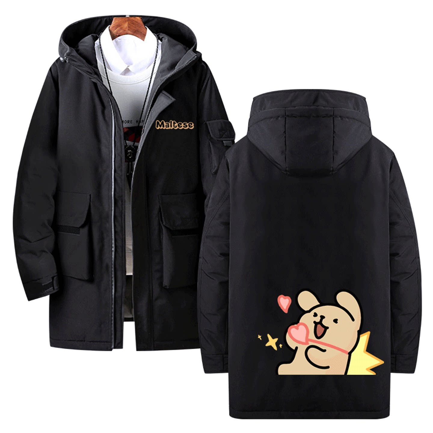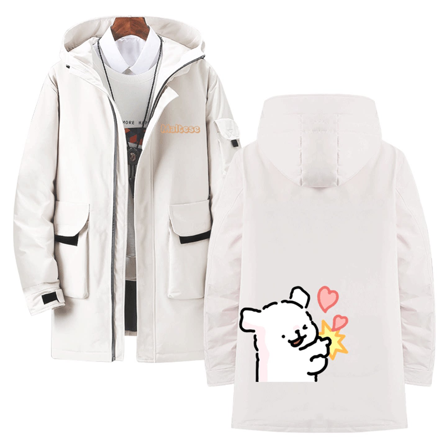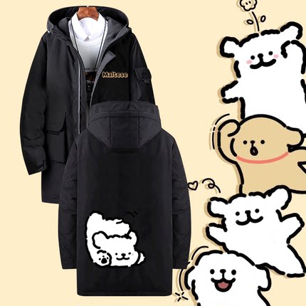 线条小狗卡通可爱联名周边印花男女情侣秋冬季可定制中长款羽绒服