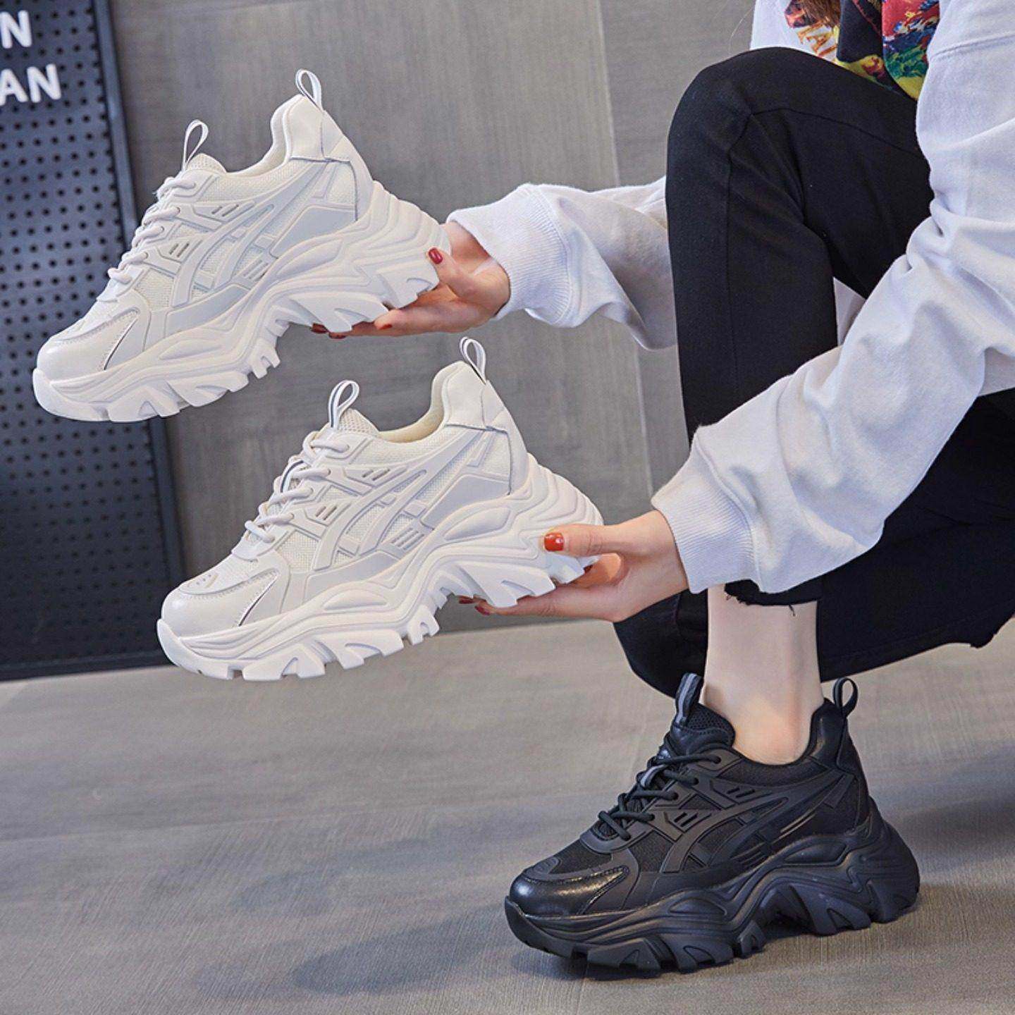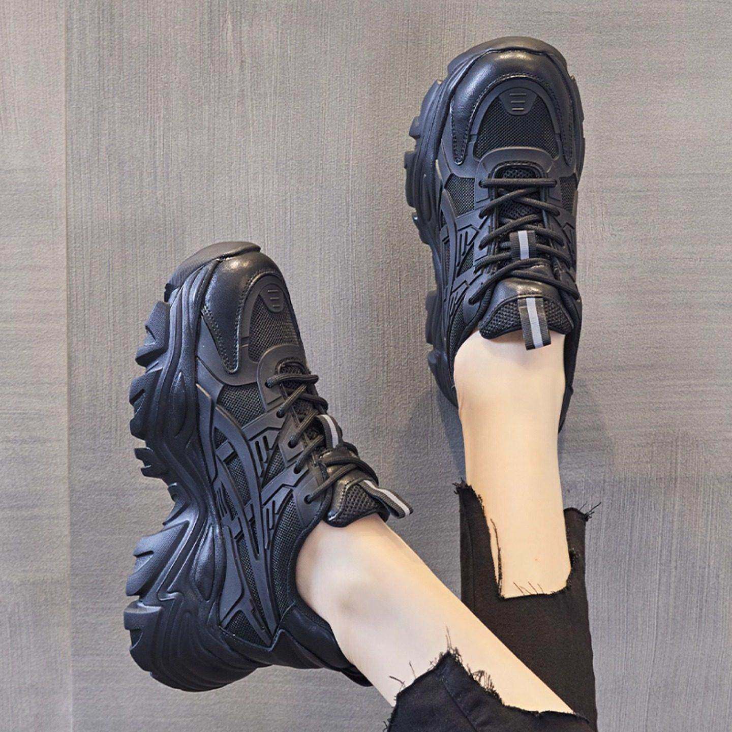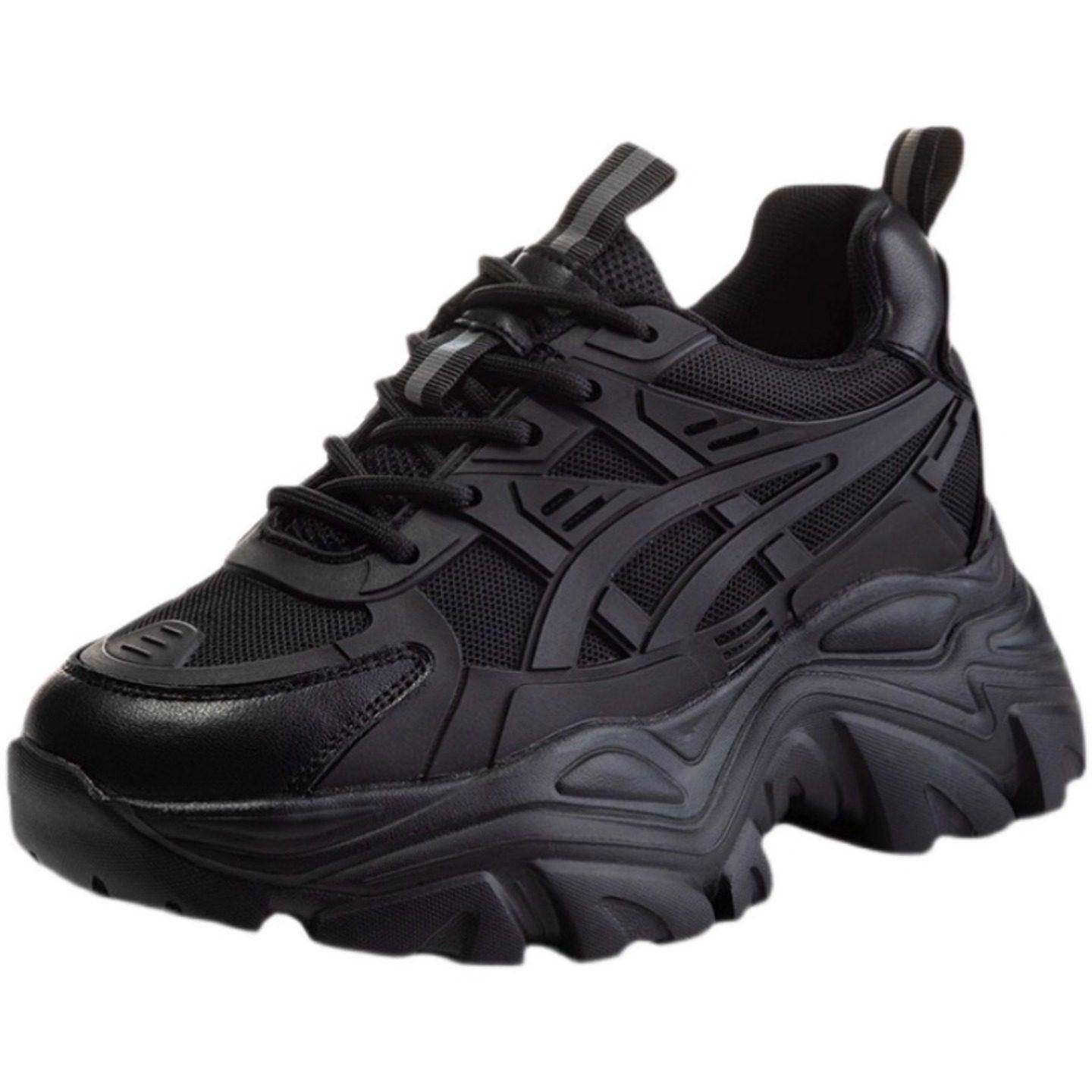 香港黑色老爹鞋女8cm内增高2025年新款春秋厚底单鞋松糕运动鞋子