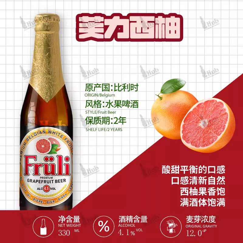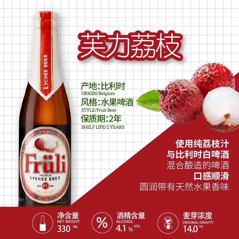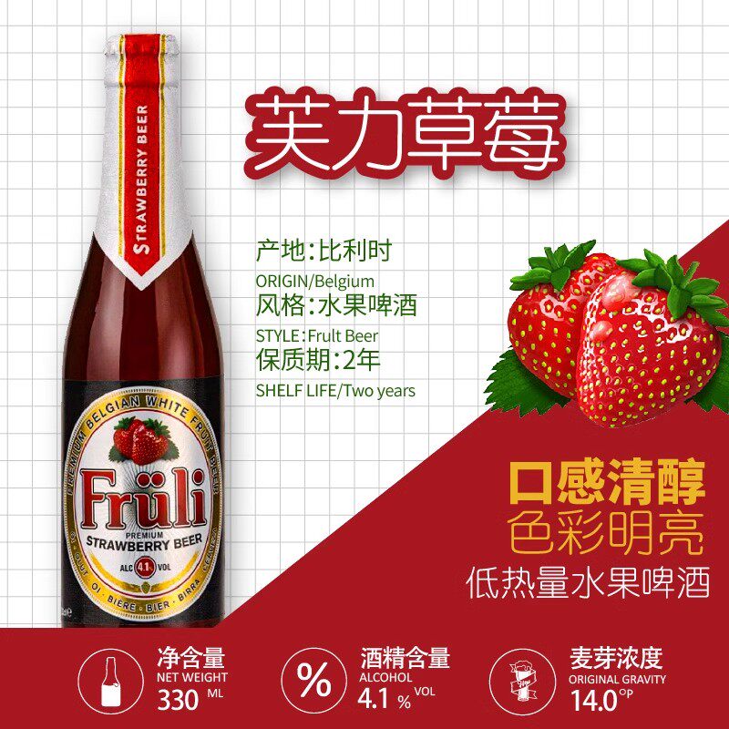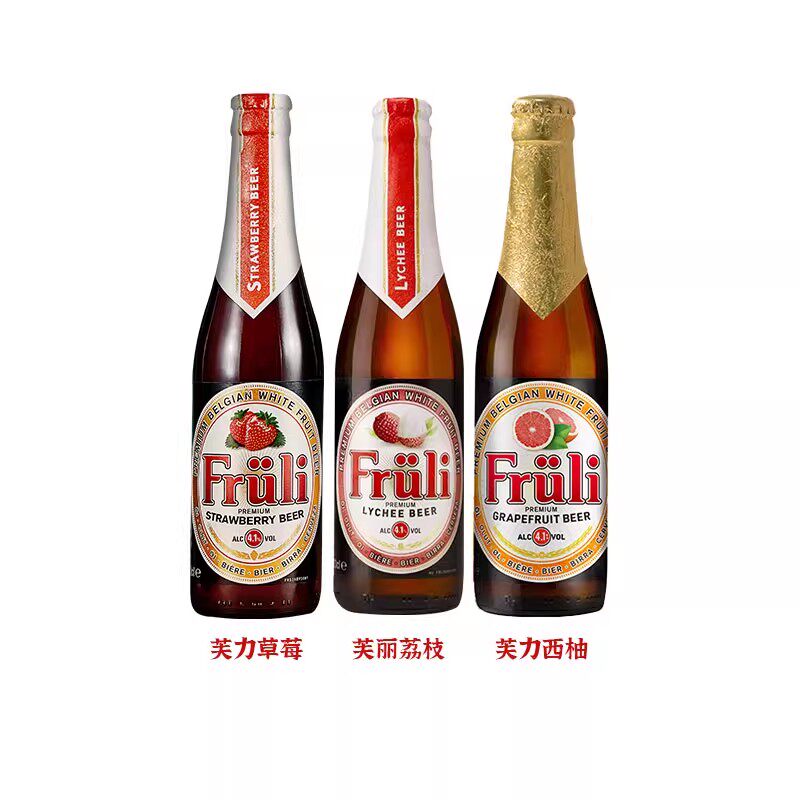 比利时进口 芙力草莓/荔枝/木瓜水果小麦精酿啤酒Fruli 330ml瓶装