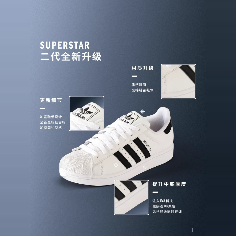 Adidas三叶草男女鞋贝壳头二代SUPERSTAR黑色板鞋休闲鞋JI0079