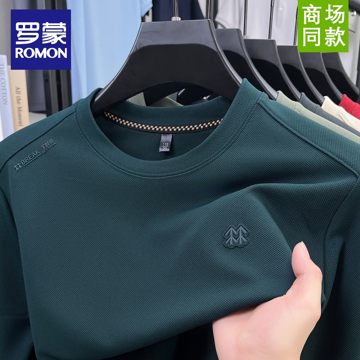 罗蒙春秋季新款男士长袖T恤宽松时尚休闲印花卫衣打底上衣男