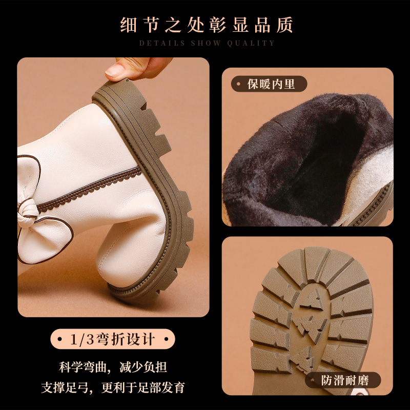 舞玛女童鞋子儿童马丁靴2025新款冬季小女孩加绒保暖蝴蝶结二棉靴