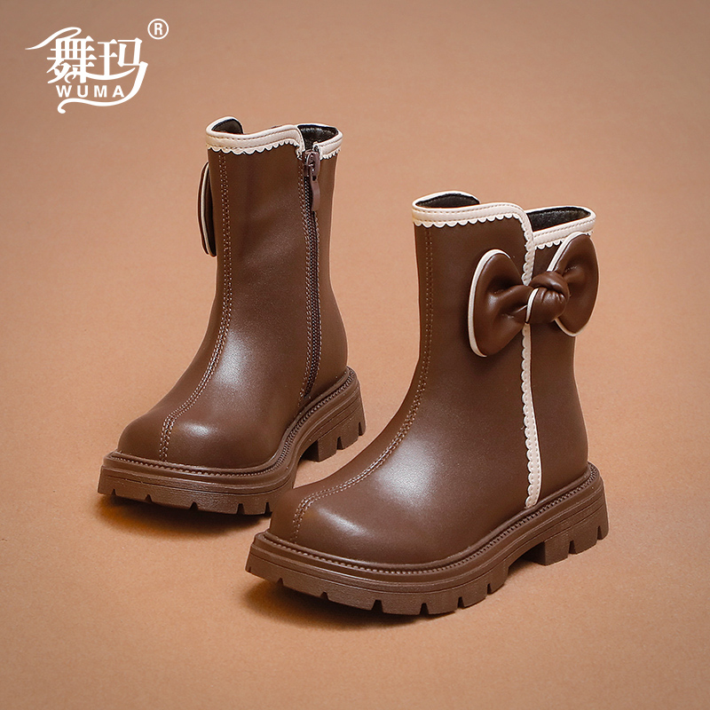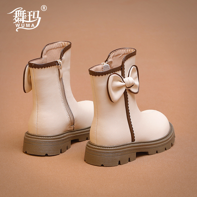 舞玛女童冬季加绒蝴蝶结马丁靴