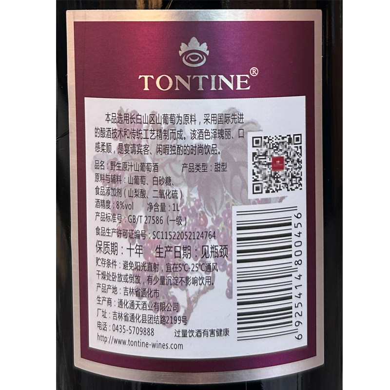 通化通天原汁山葡萄酒,甜爽不苦