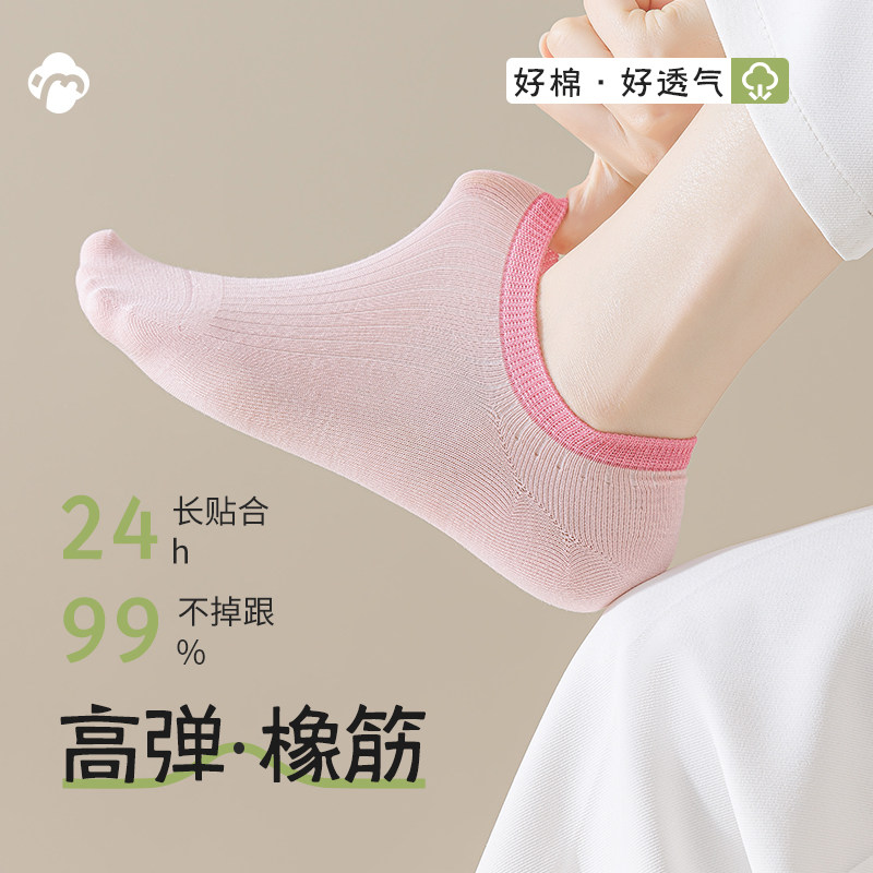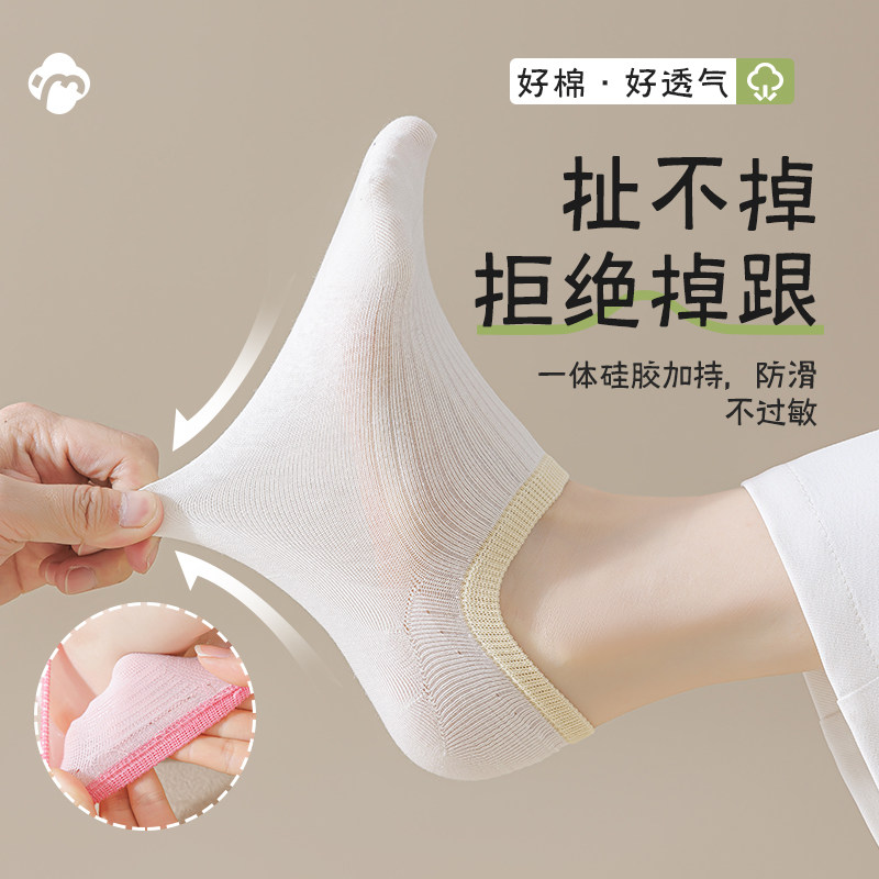 无骨袜子女船袜夏季薄款防滑不掉跟浅口隐形袜纯棉多巴胺短袜夏天