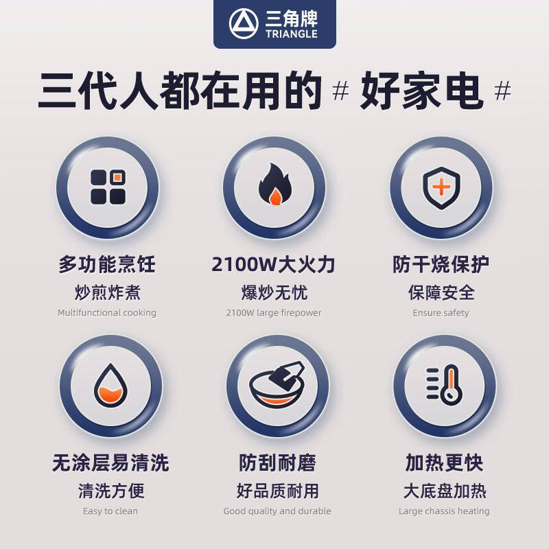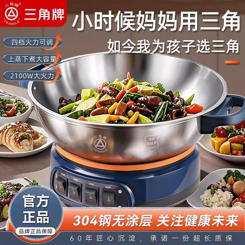 三角牌304不锈钢电炒锅加厚多功能家用蒸煮一体电热锅大容量电锅