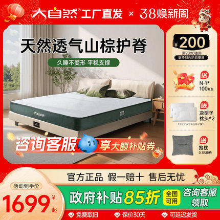 大自然山棕床垫硬垫天然棕榈非椰棕家用护腰护脊椎乳胶可定制雅静