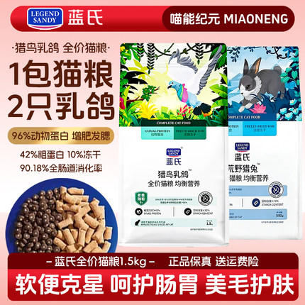 蓝氏猫粮1.5kg猎鸟乳鸽冻干生骨肉全价猫粮幼成年猫咪通用天然粮
