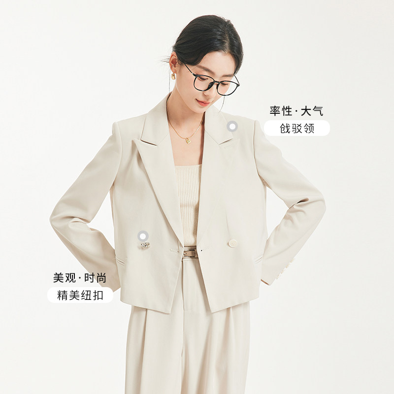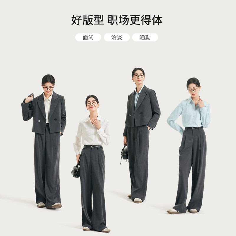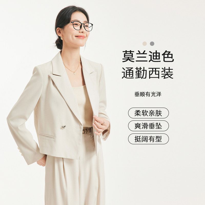 图曼朵灰色西装套装女装秋季通勤职场面试正装小个子短款西服外套