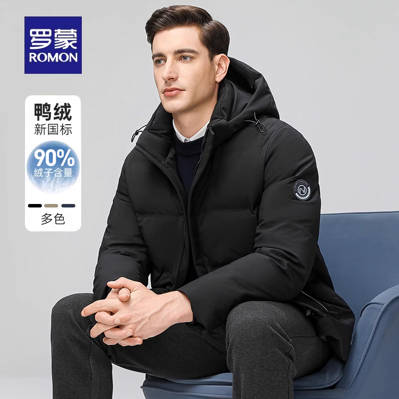 【可拆卸帽】罗蒙男士短款羽绒服2025冬季新款舒适面包服厚外套男