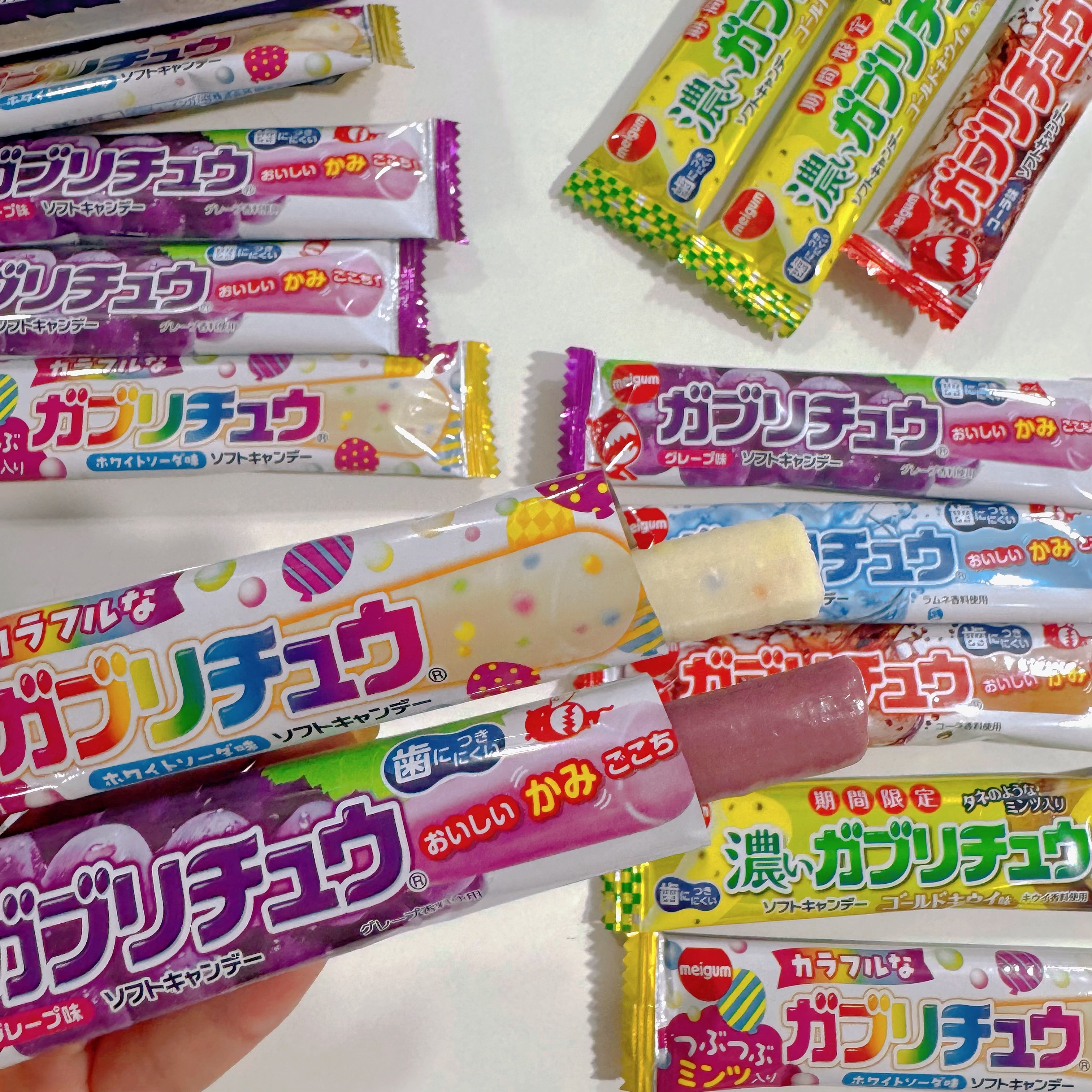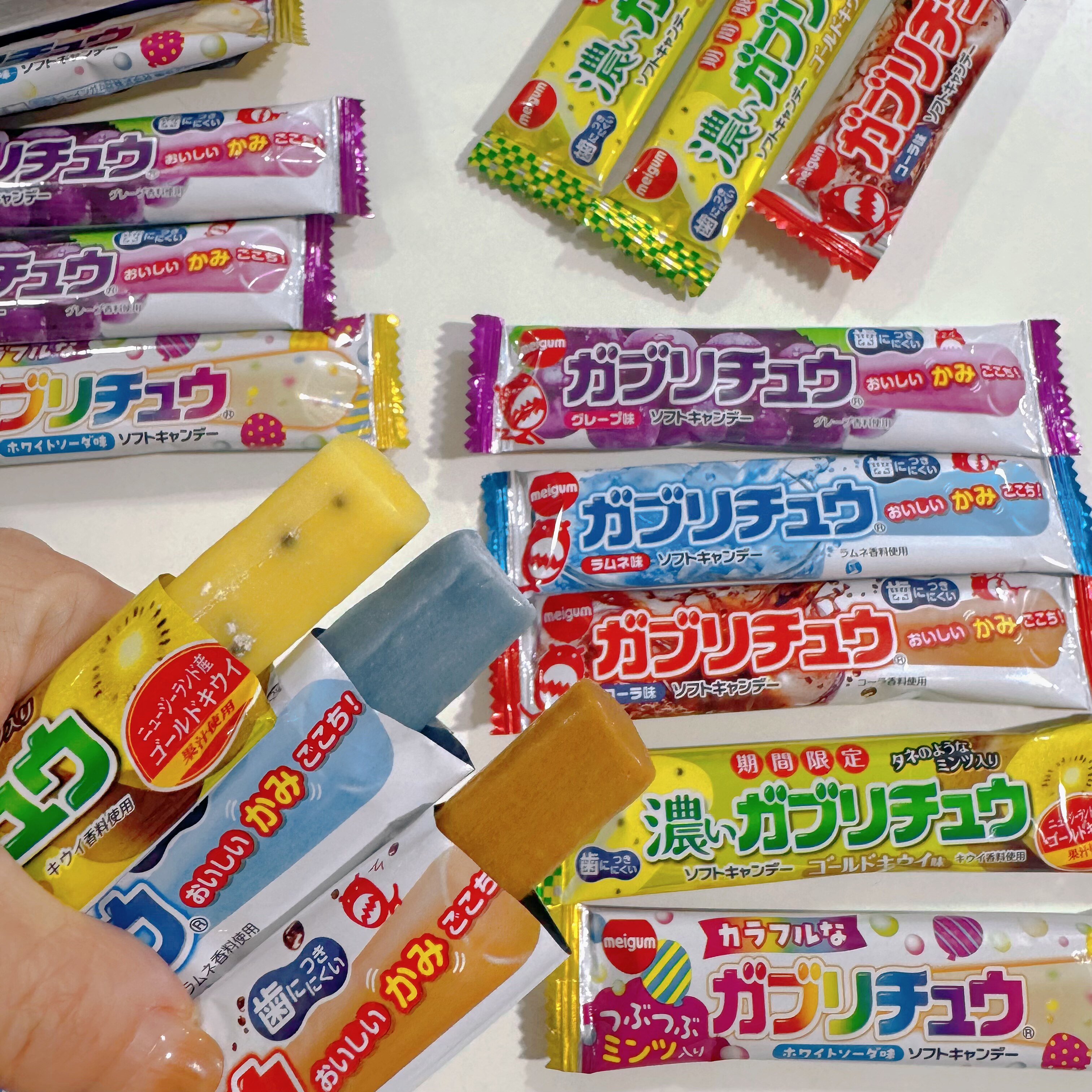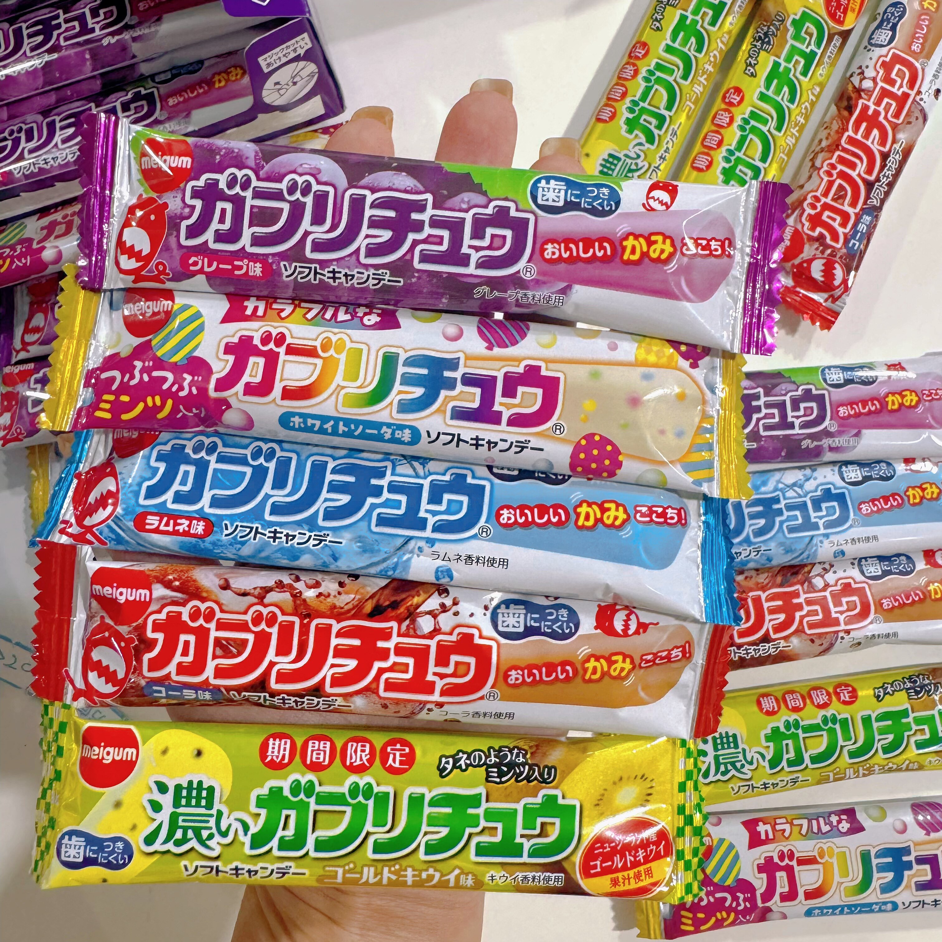 日本进口Meigum明治耐嚼果汁条形软糖葡萄哈密瓜可乐苏打味糖果