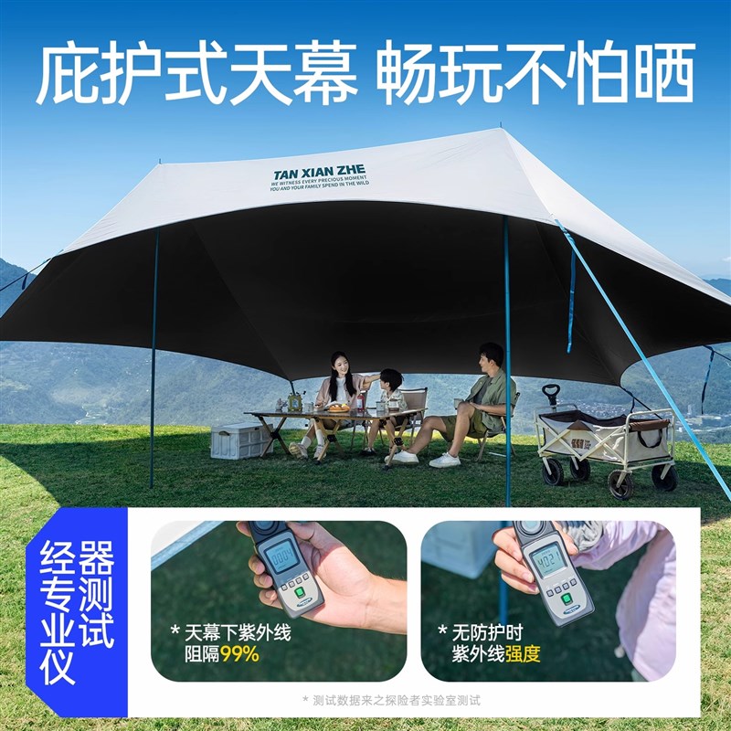 探险者速搭黑胶天幕帐篷户外桌椅露营六件套野营免搭建遮阳棚晴岚