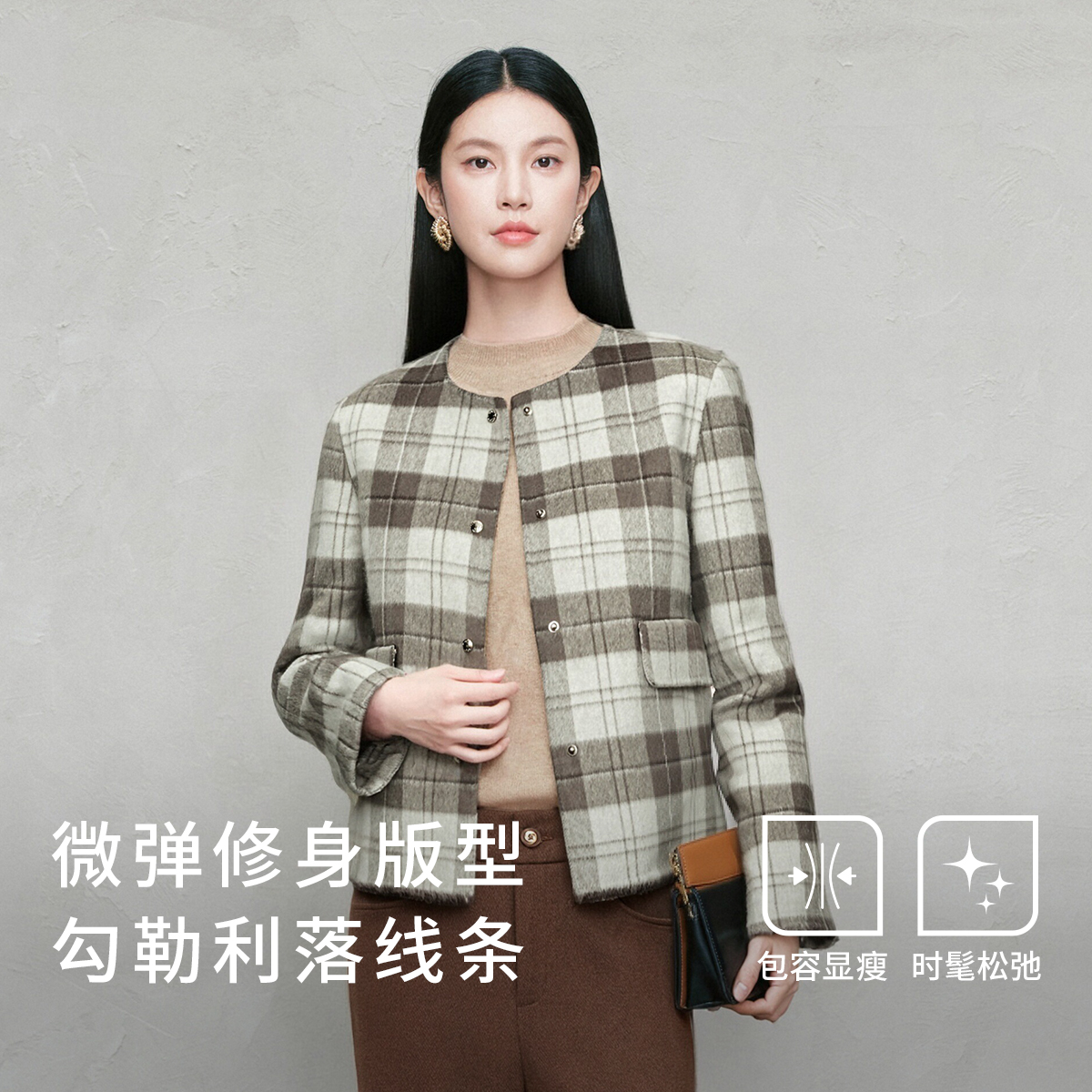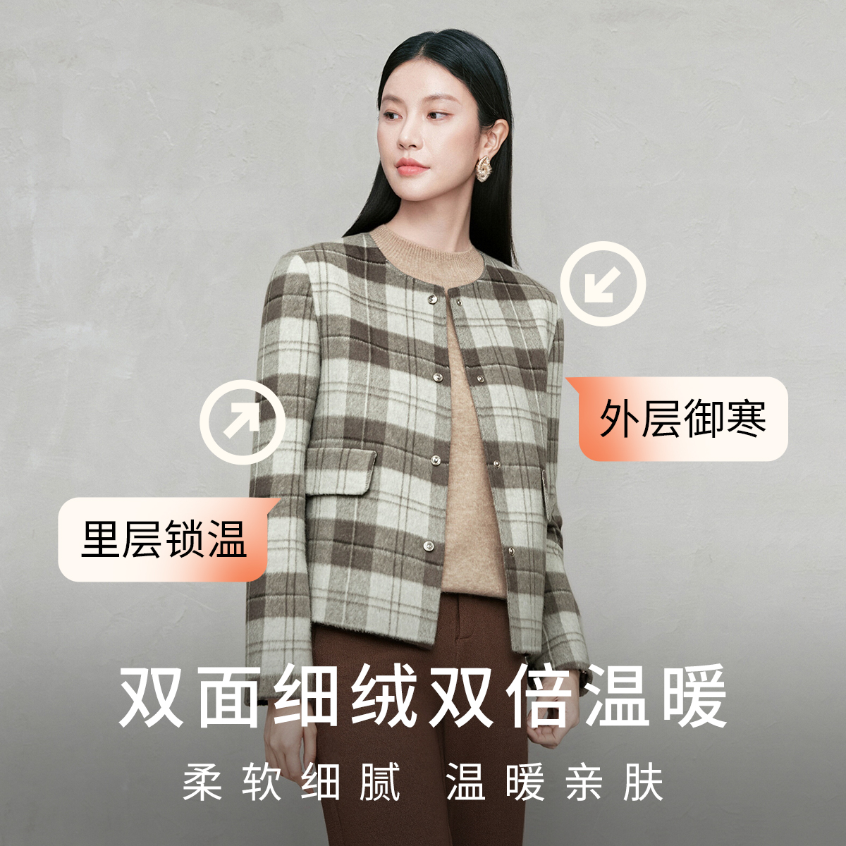 【羊绒】FINITY菲妮迪毛呢外套25年冬季新款简约双面呢格子大衣女