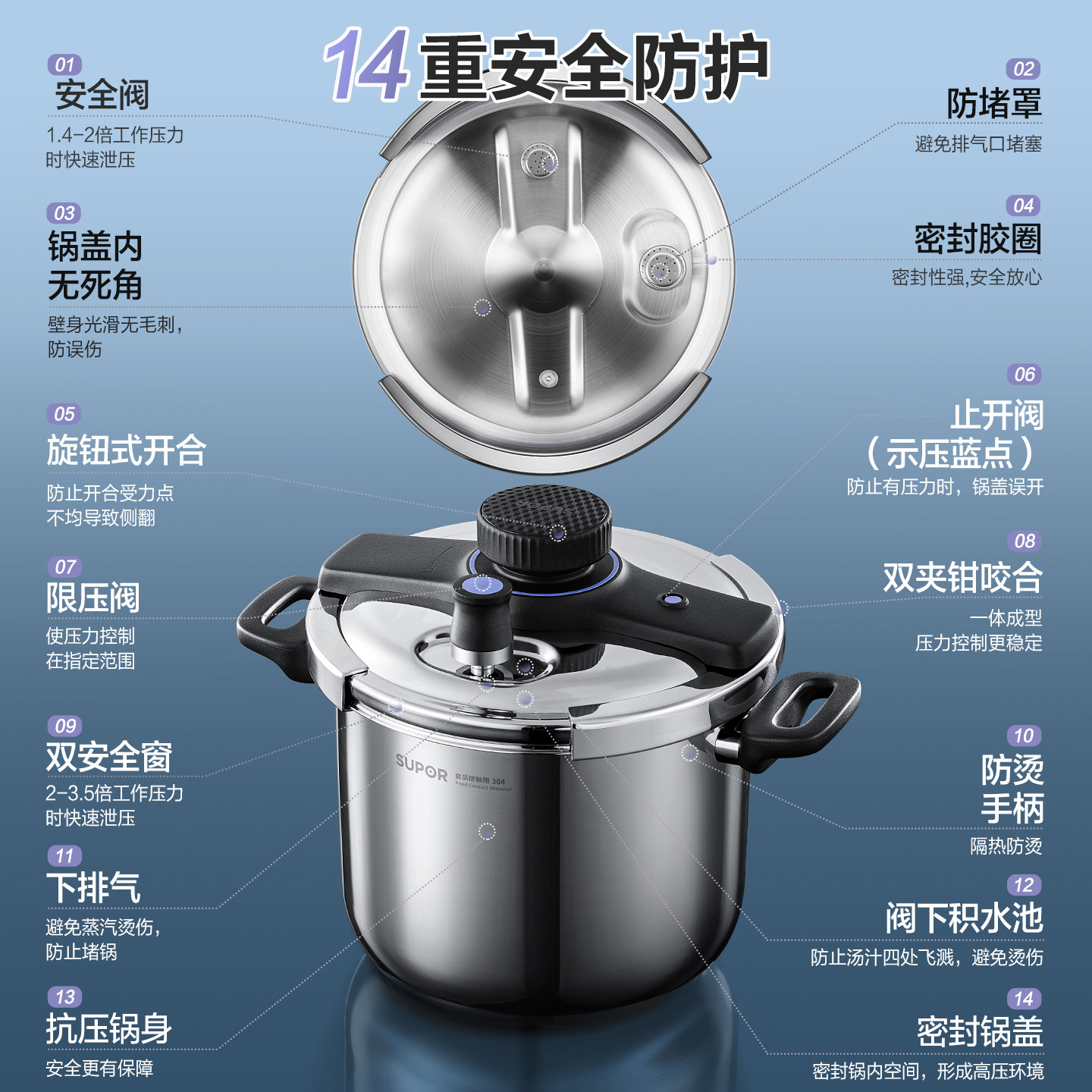 苏泊尔防爆高压锅新款商用大容量燃气电磁炉饭店酒店不锈钢压力锅