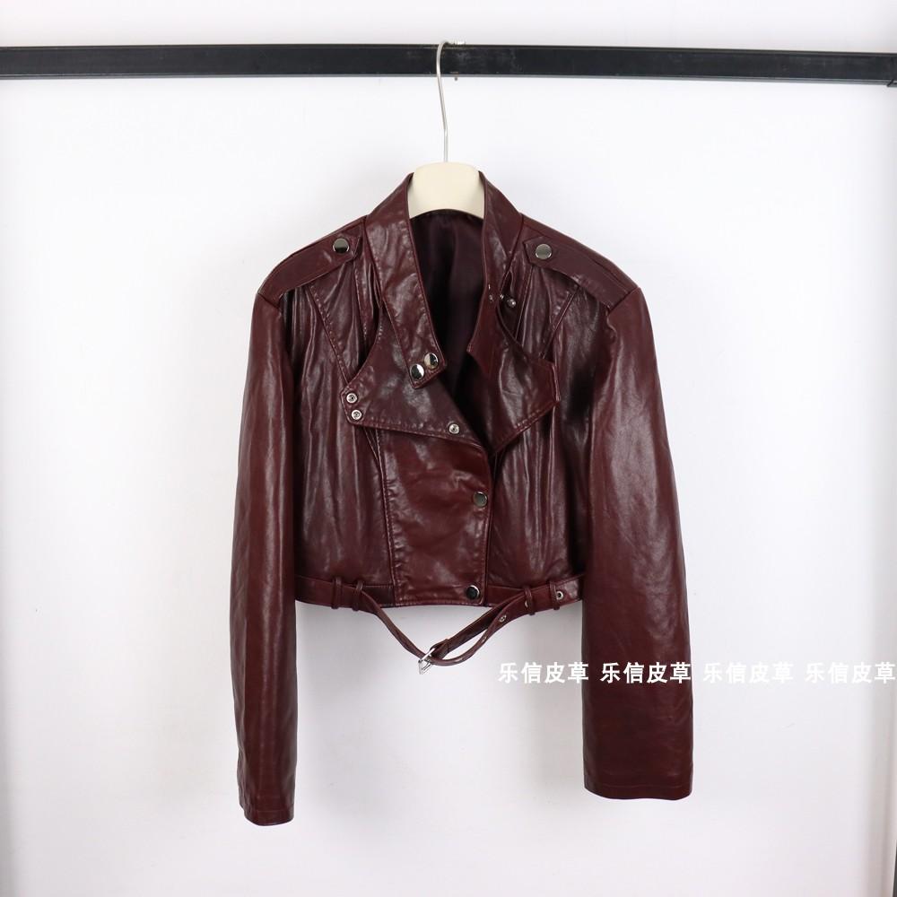 赫本机车风女2024秋冬新款真皮夹克时尚百搭油蜡皮皮衣外套绵羊皮
