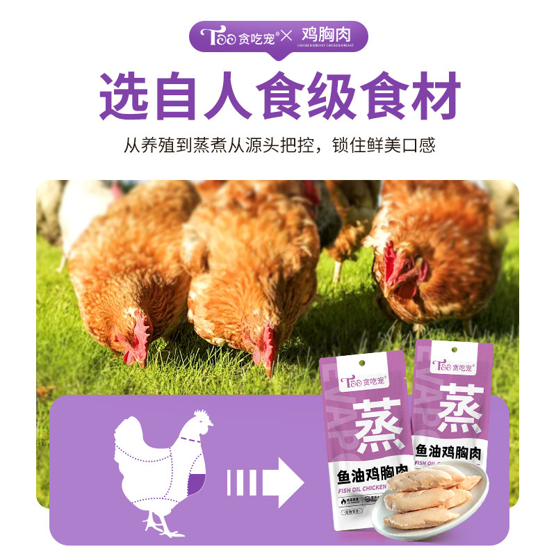 猫狗零食蒸煮鸡胸肉鸡肉条猫犬通用高蛋白开袋即食犬猫鱼油湿粮包