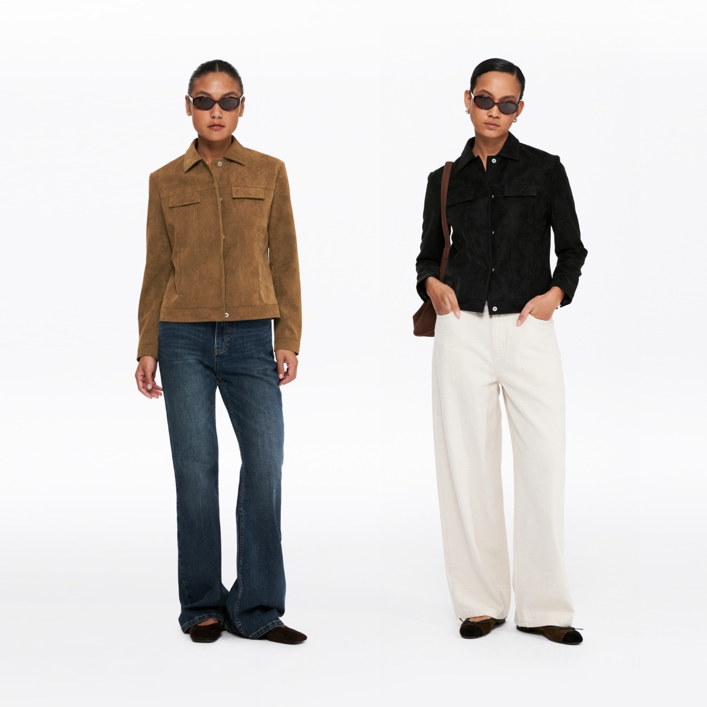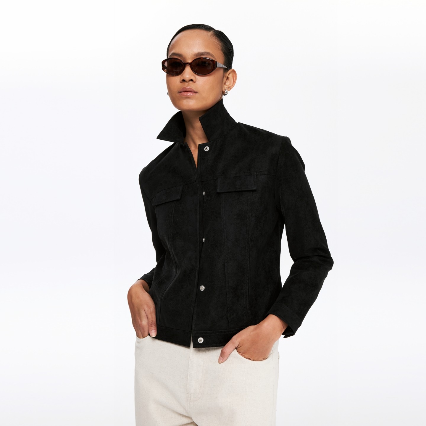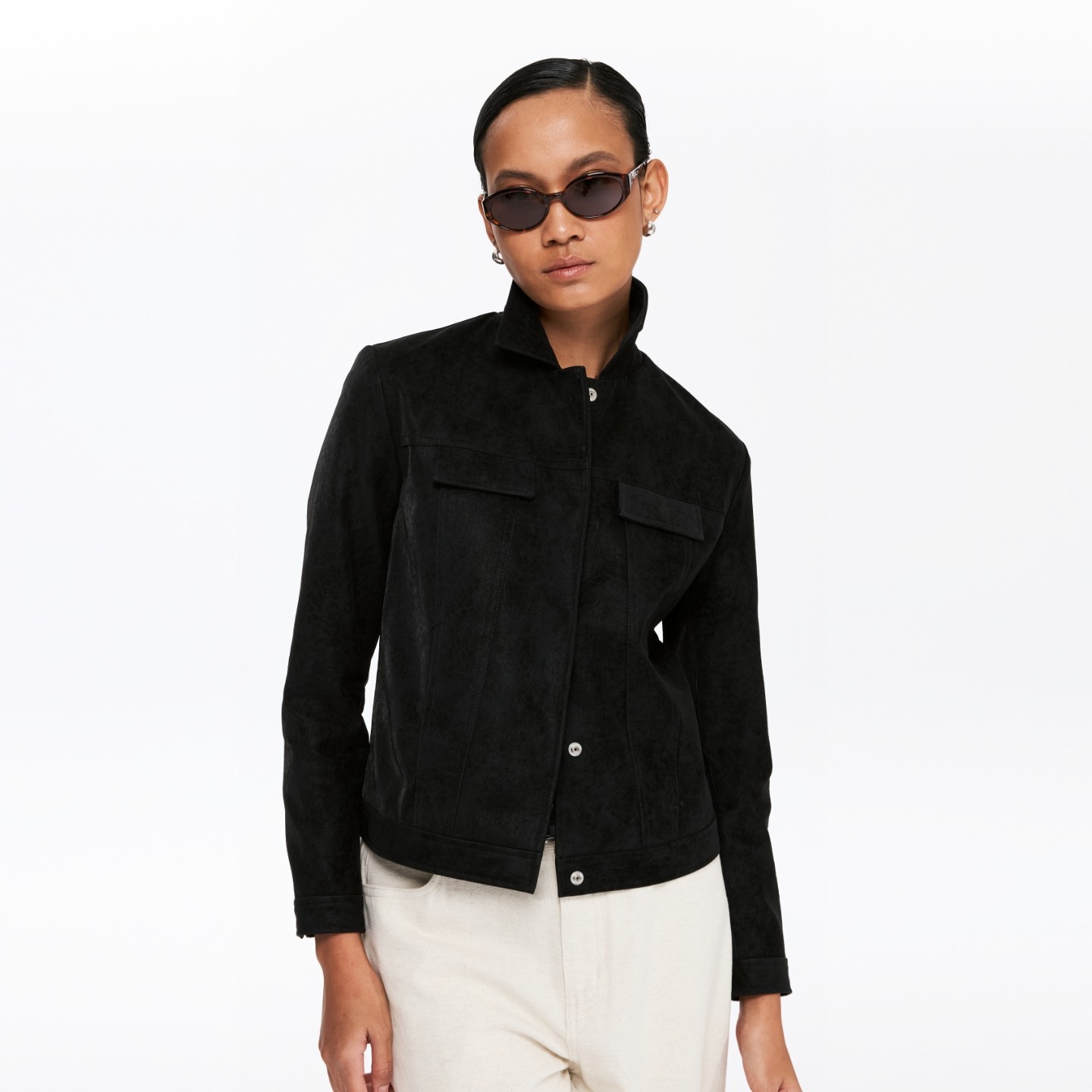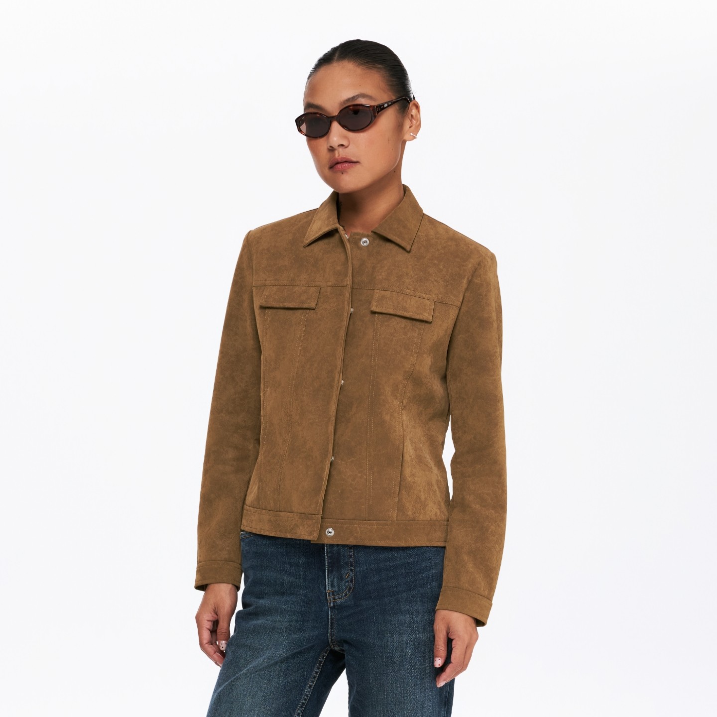 oneup哑光麂皮感短款PU皮衣外套女秋冬季美式复古修身翻领夹克