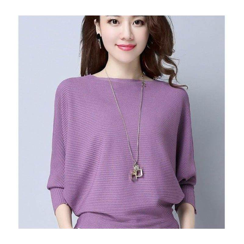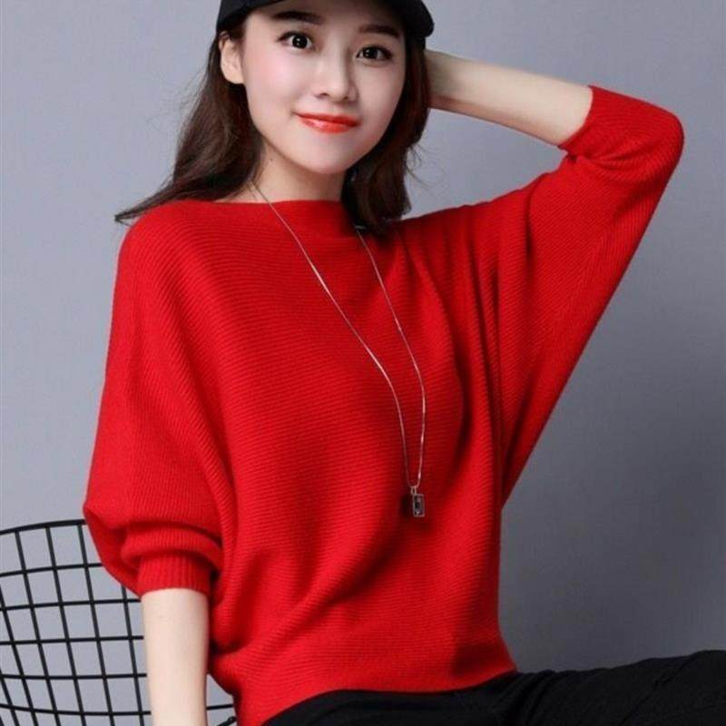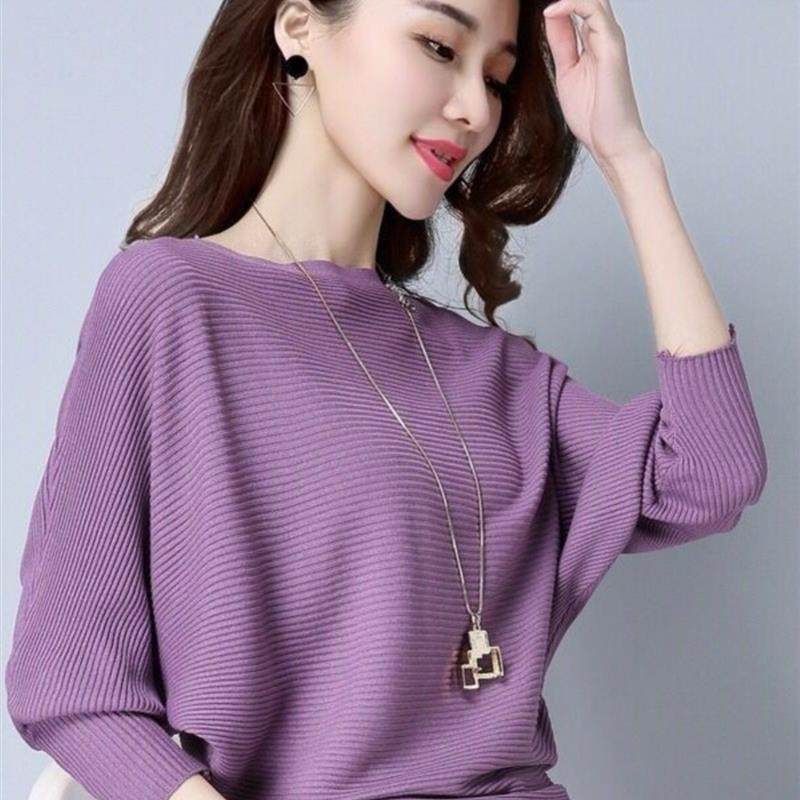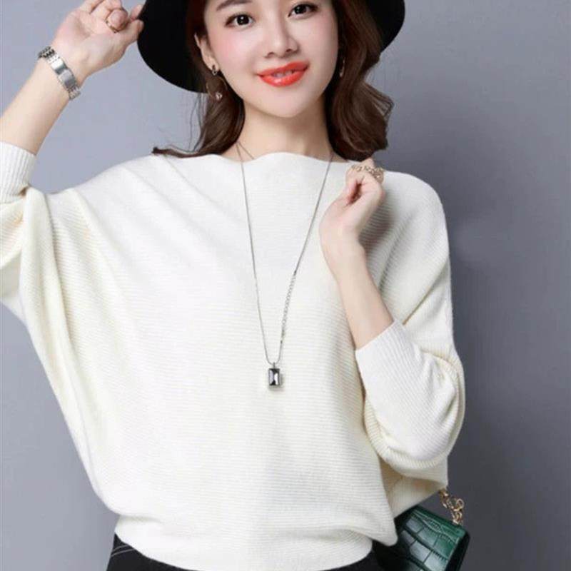 外套女春秋针织蝙蝠衫新款洋气上衣宽松外穿大码纯色韩版套头毛衣