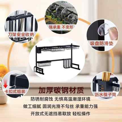 厨房沥水水沥架不锈置物架黑色碗碟架厨具a9103收纳架槽水钢架