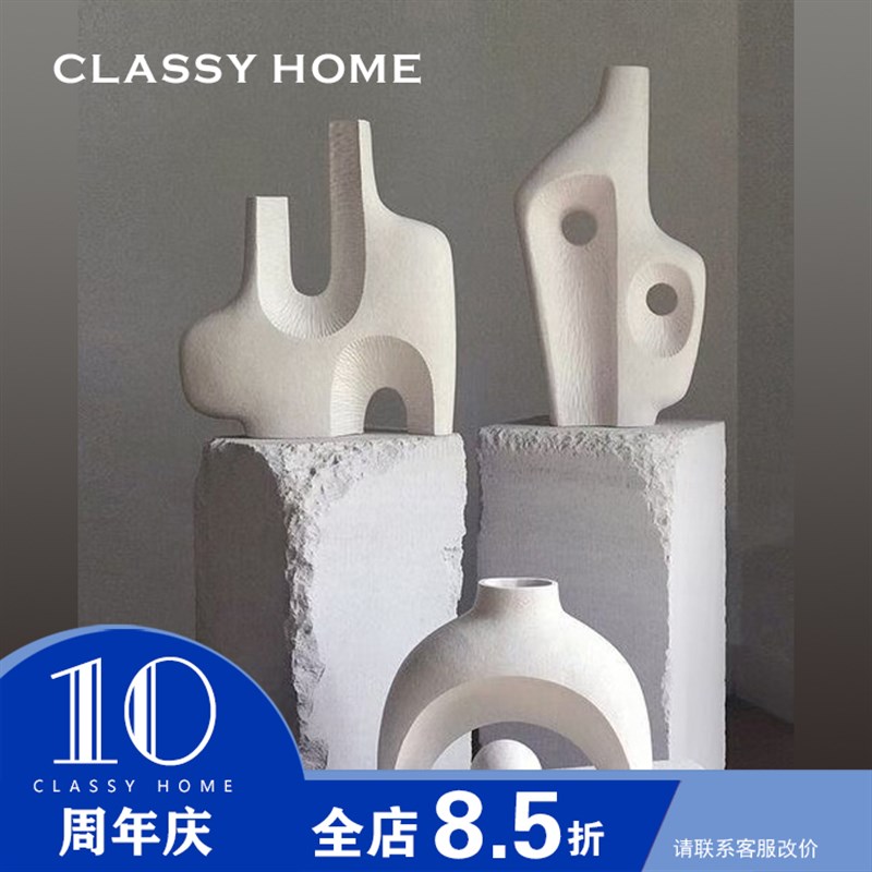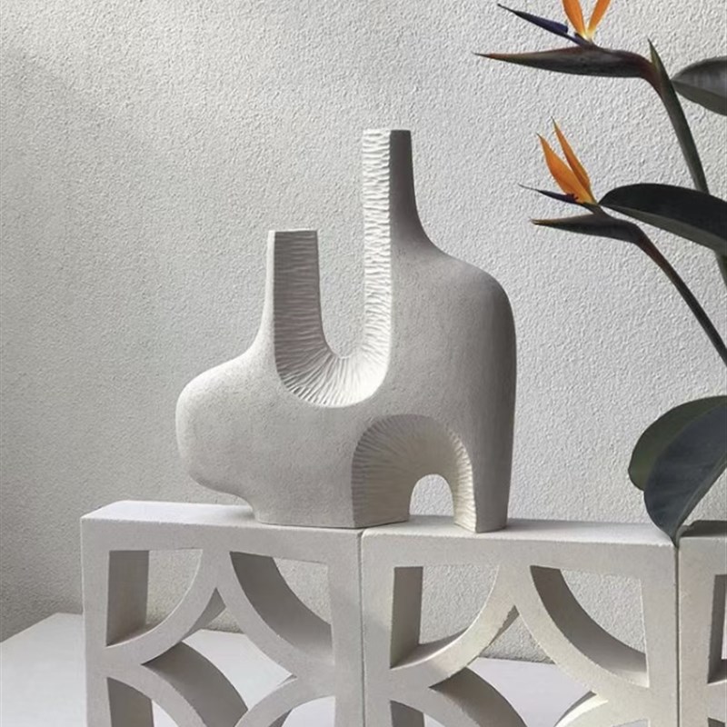 现代抽象简约个性几何白色陶瓷花瓶客厅样板间花插花器侘寂风摆件