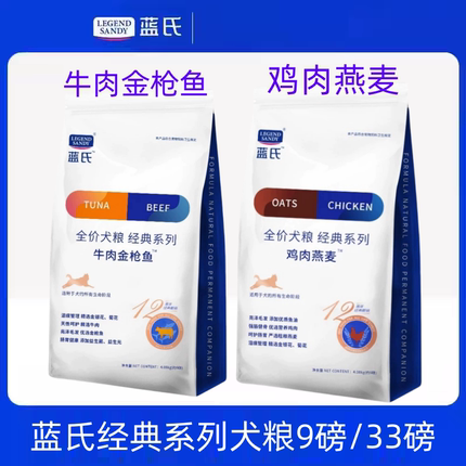 蓝氏狗粮33磅14.97kg牛肉金枪鱼鸡肉燕麦全价犬粮金毛通用型犬粮