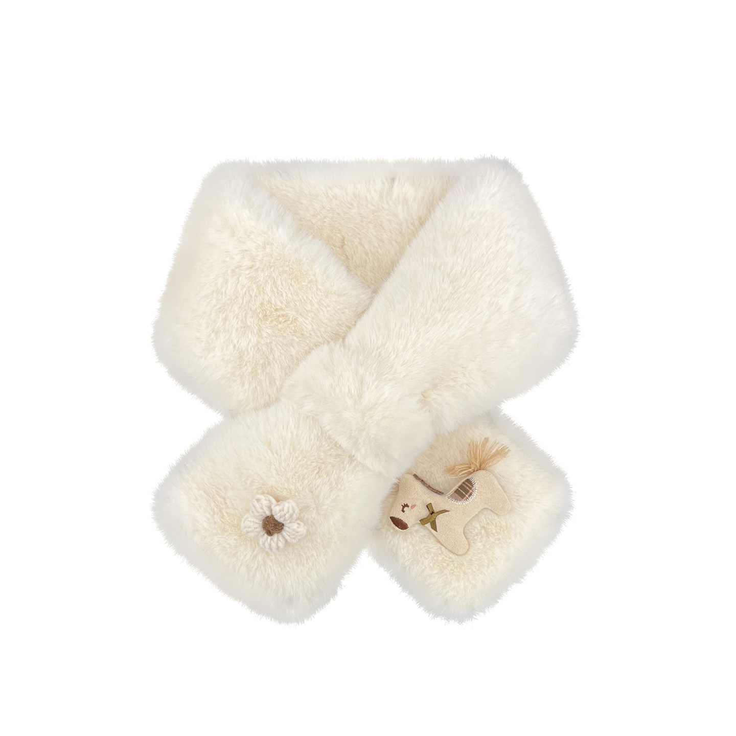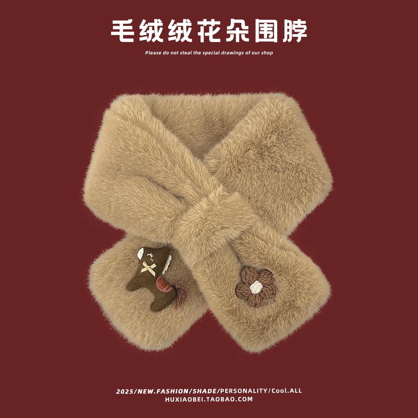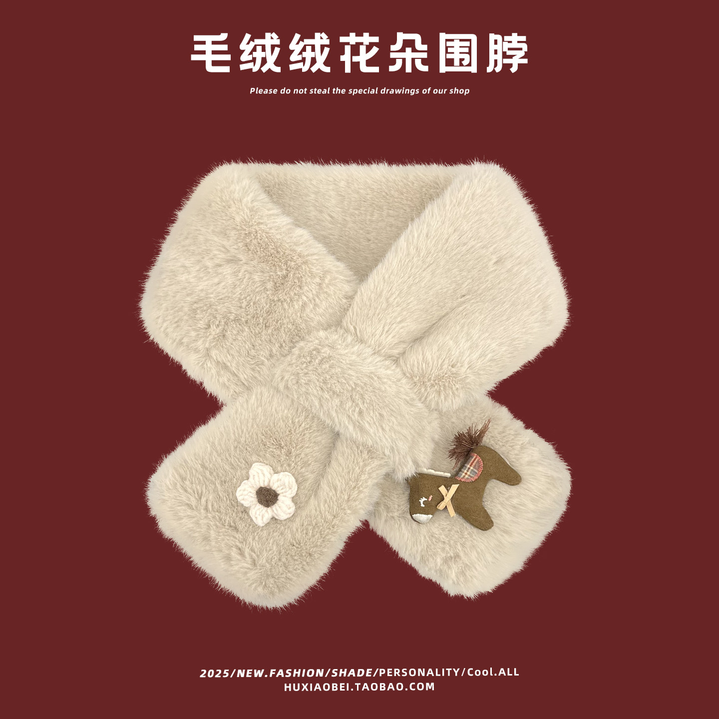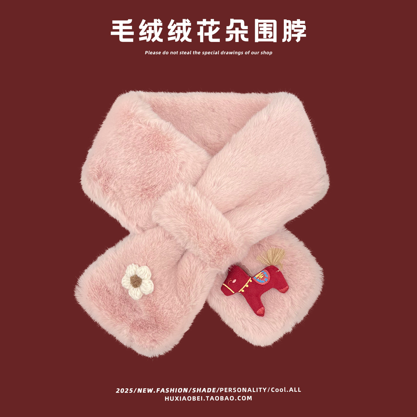 日系可爱卡通花朵毛绒交叉围脖女秋冬季出游骑行保暖防寒百搭围巾