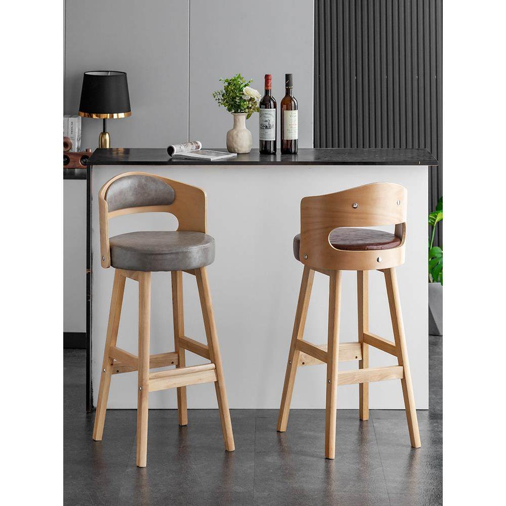 北欧现代简约轻奢吧台椅子家用高脚椅实木酒吧椅靠背时尚高脚凳子