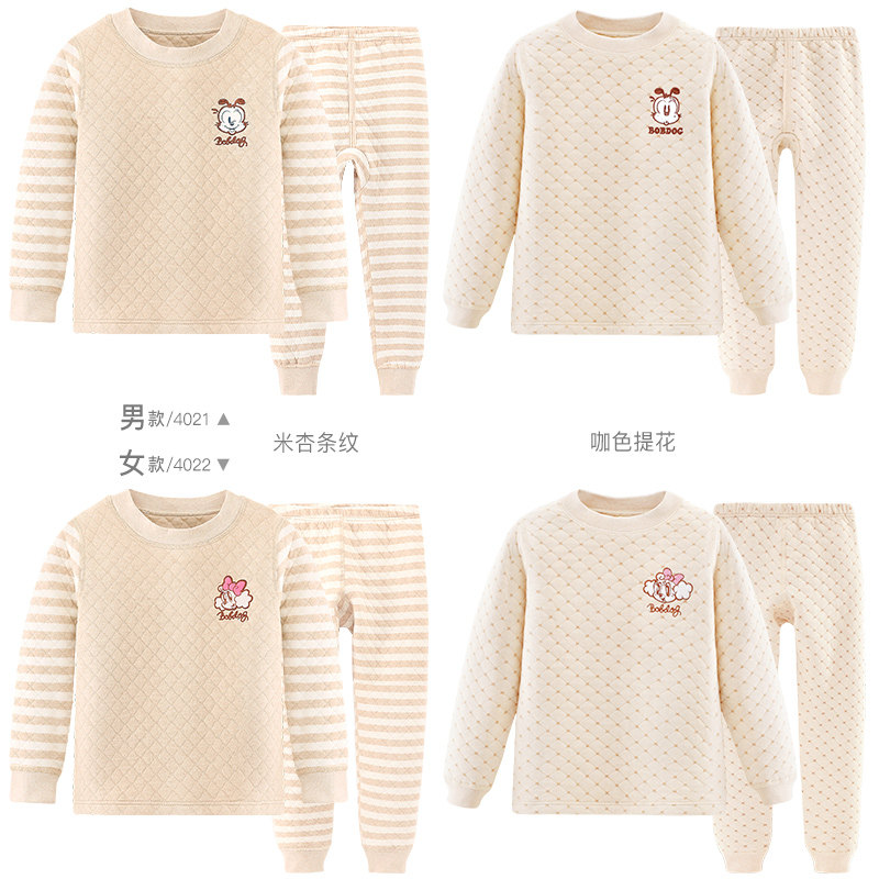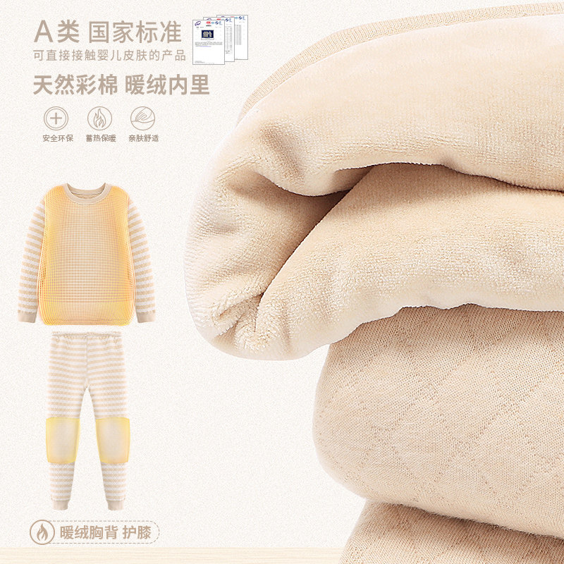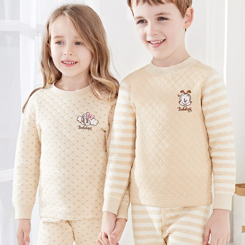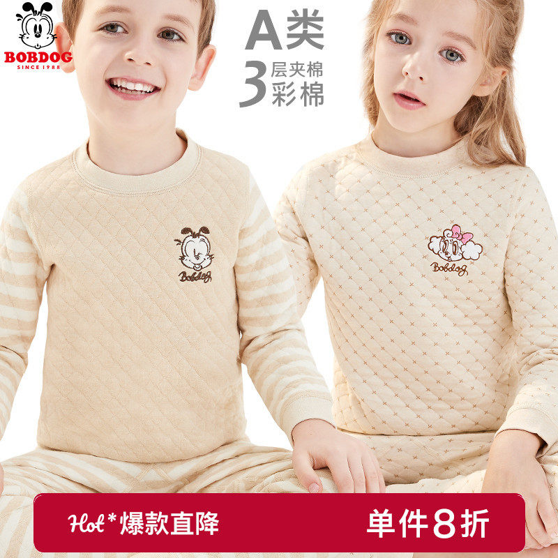 巴布豆儿童保暖内衣套装加绒加厚男童秋衣秋裤全棉女童宝宝秋冬装