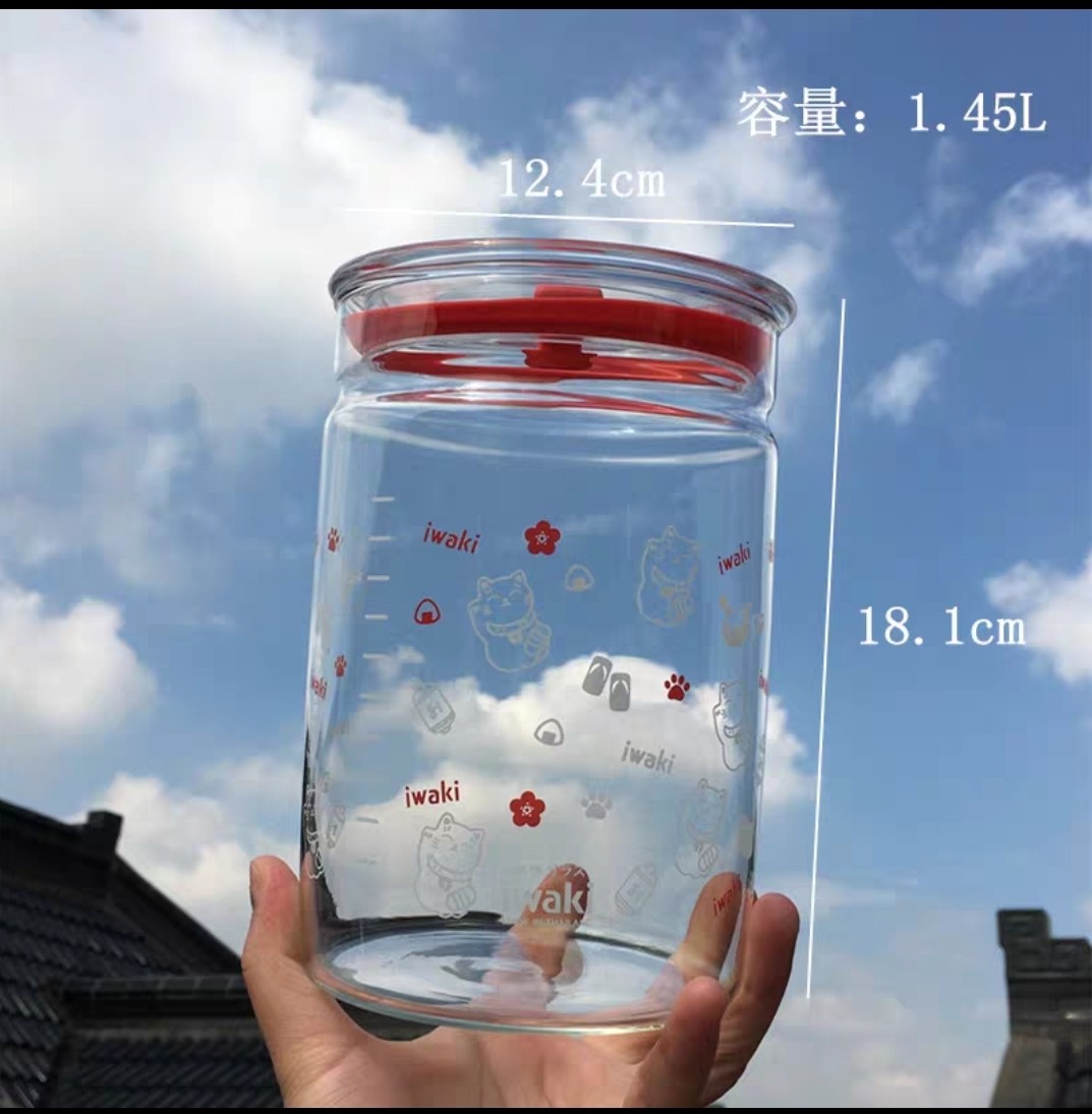 日本iwaki怡万家耐热玻璃密封罐大号奶粉罐玻璃储物罐密闭容器