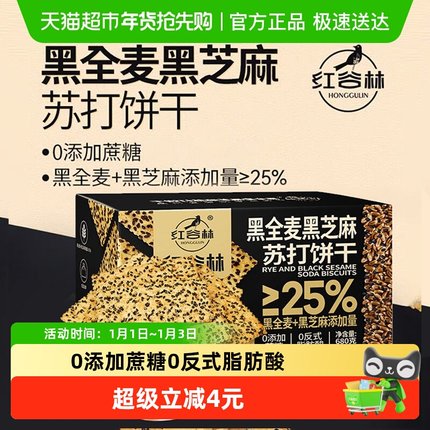 红谷林黑全麦黑芝麻苏打饼干680g*1盒早餐代餐孕妇咸味粗粮小零食
