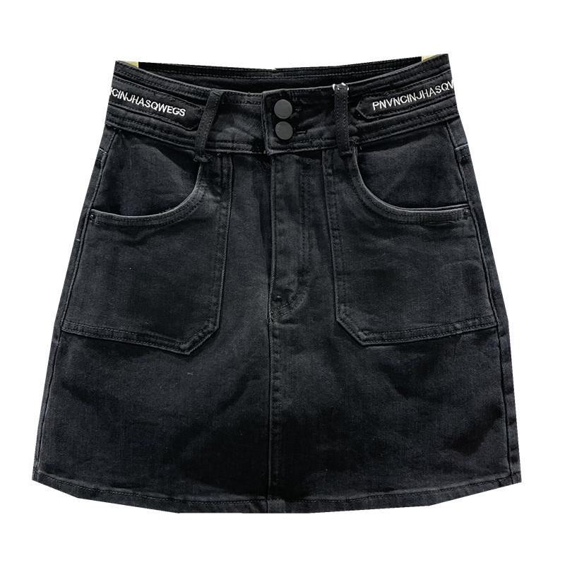 刺绣高腰黑色半身裙短裙包臀裙