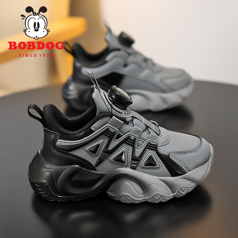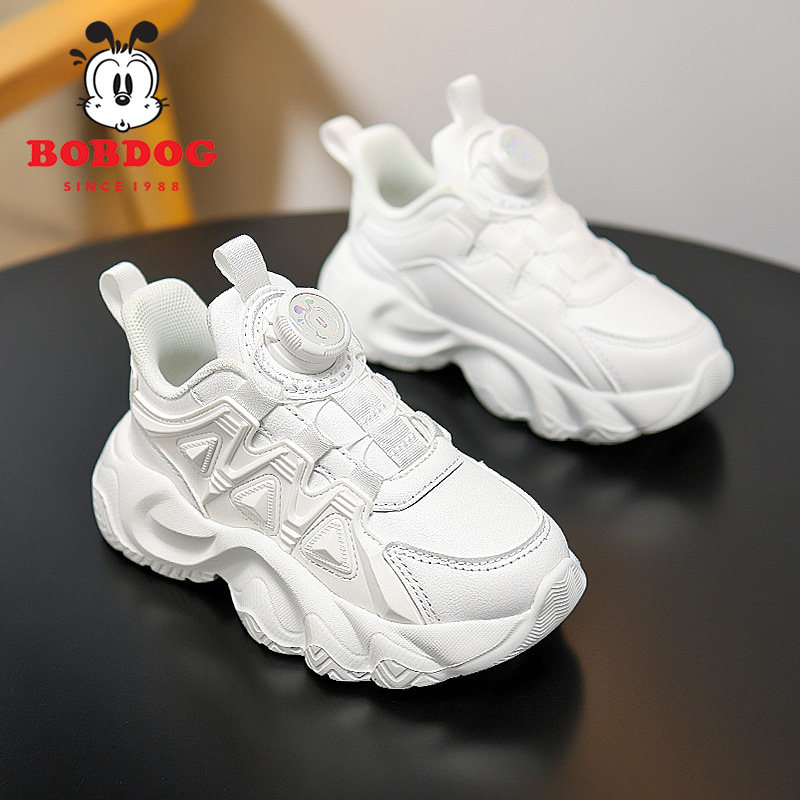 巴布豆男童小白鞋秋冬新款皮面防水儿童运动鞋女童白色软底跑步鞋