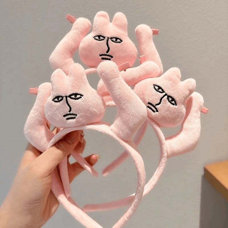 2024流行的粉红兔子发箍刘海薅头发发夹外出百搭头饰头箍发卡女款