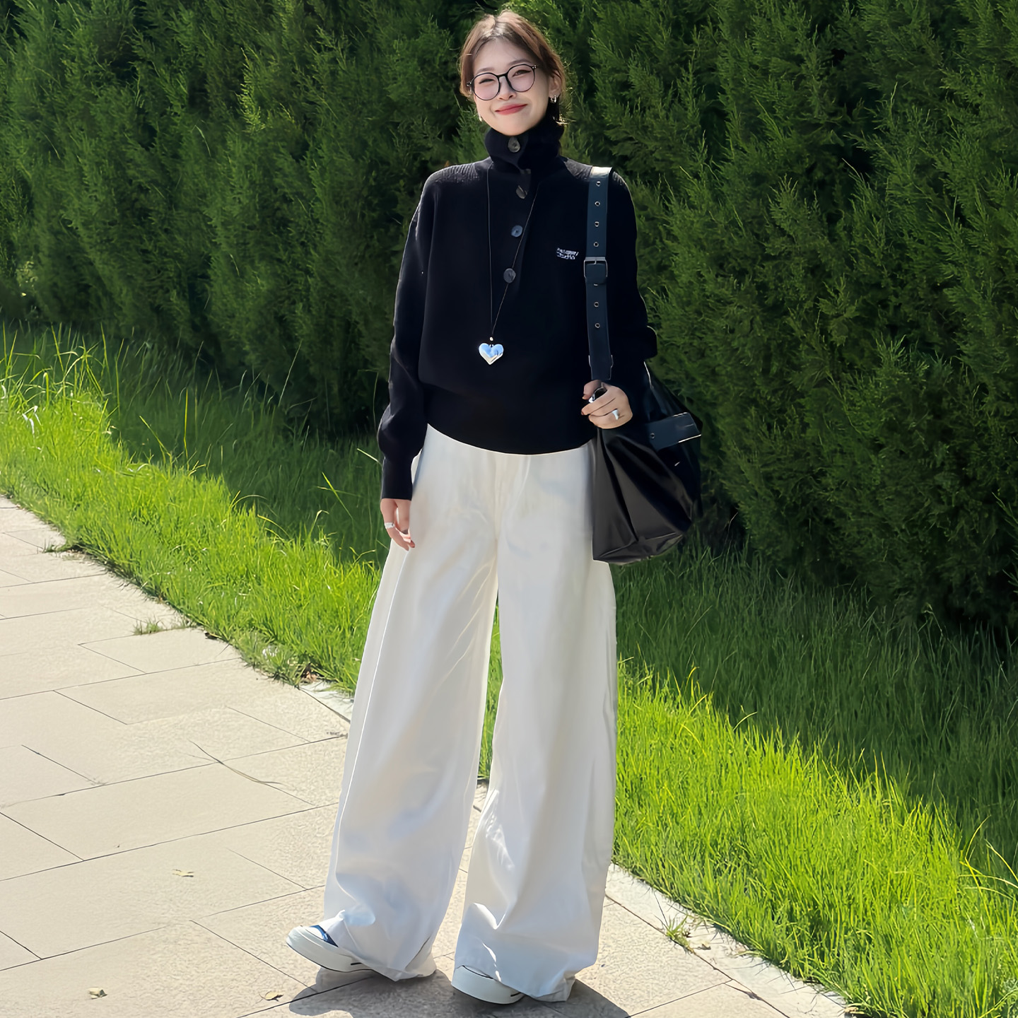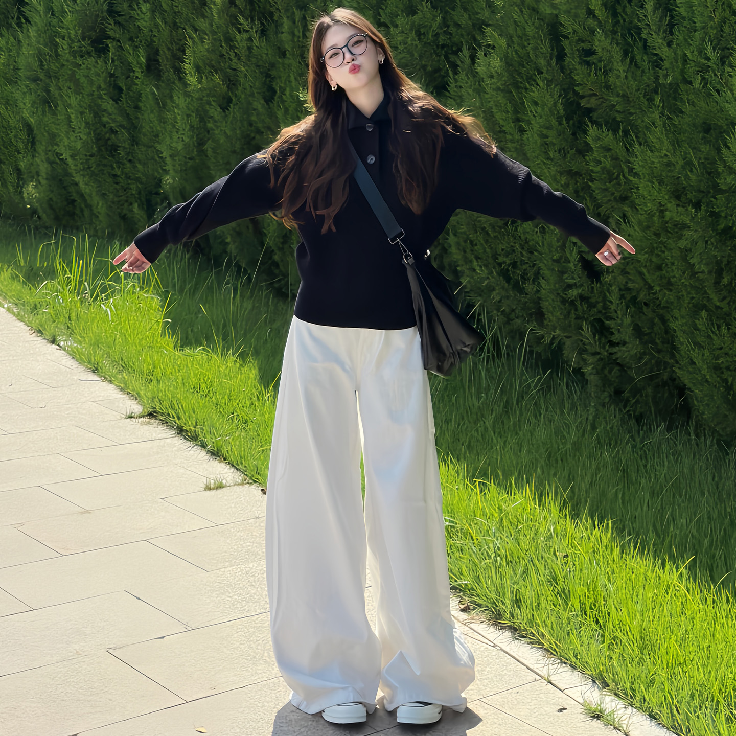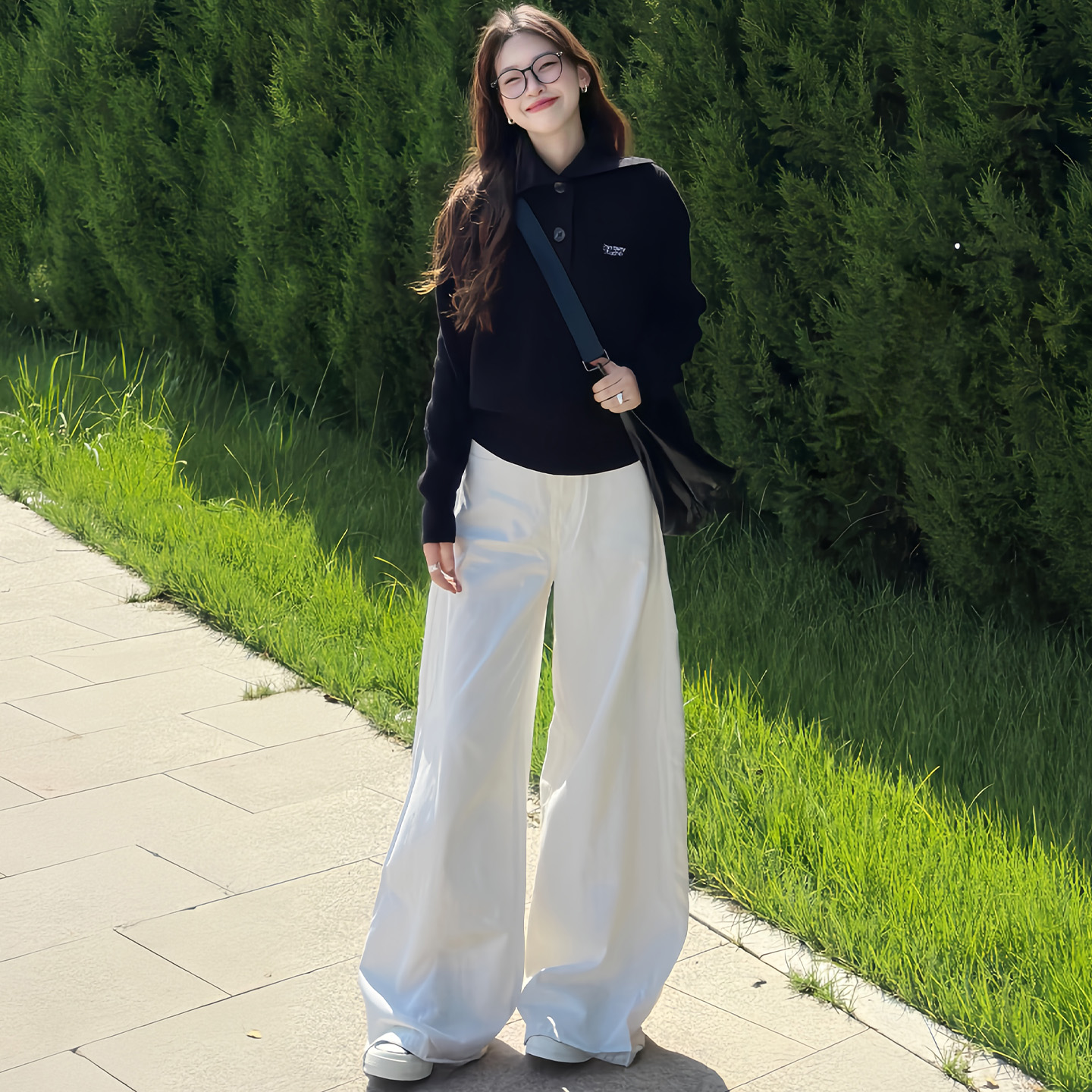 白色阔腿牛仔裤女秋季2025新款小个子高腰显瘦宽松休闲直筒拖地裤