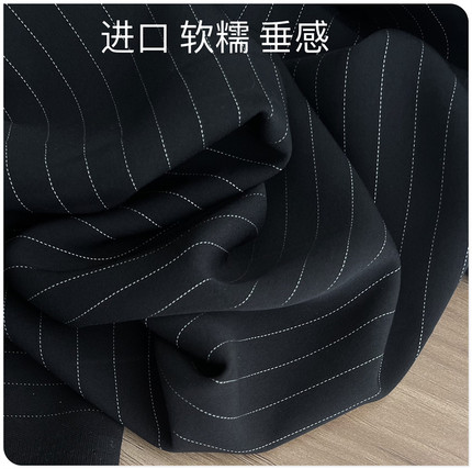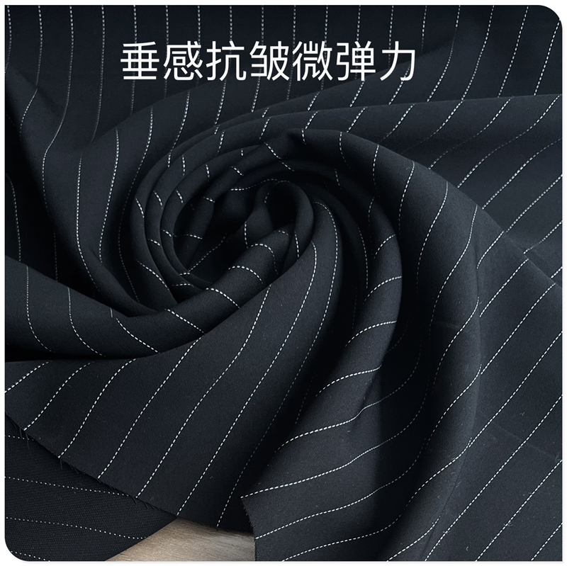 进口黑白条纹面料微弹力软糯垂感免烫春夏西服裤子薄外套服装布料