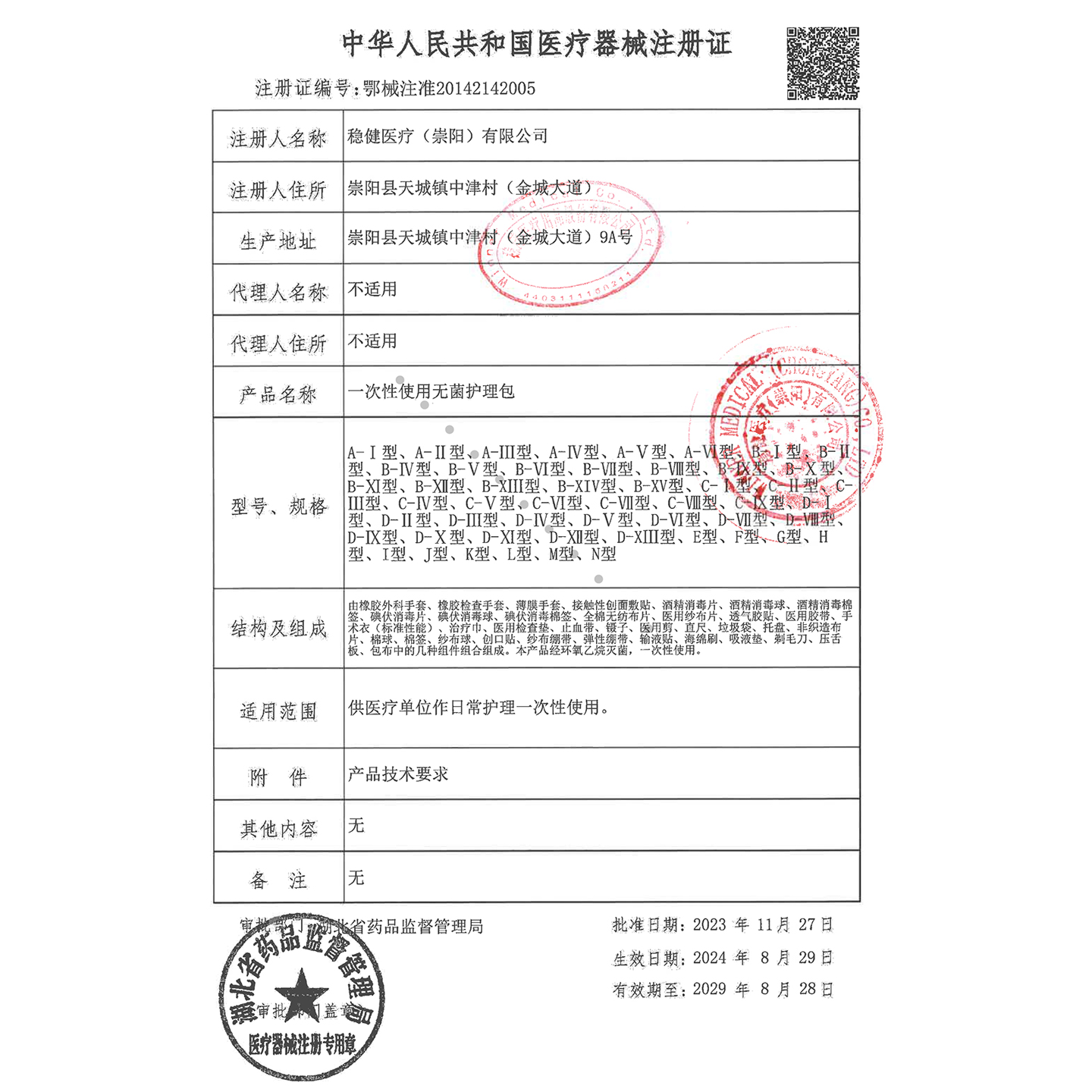 稳健无菌护理包一次性使用透析包内含橡胶手套碘伏棉签B-XV型内瘘