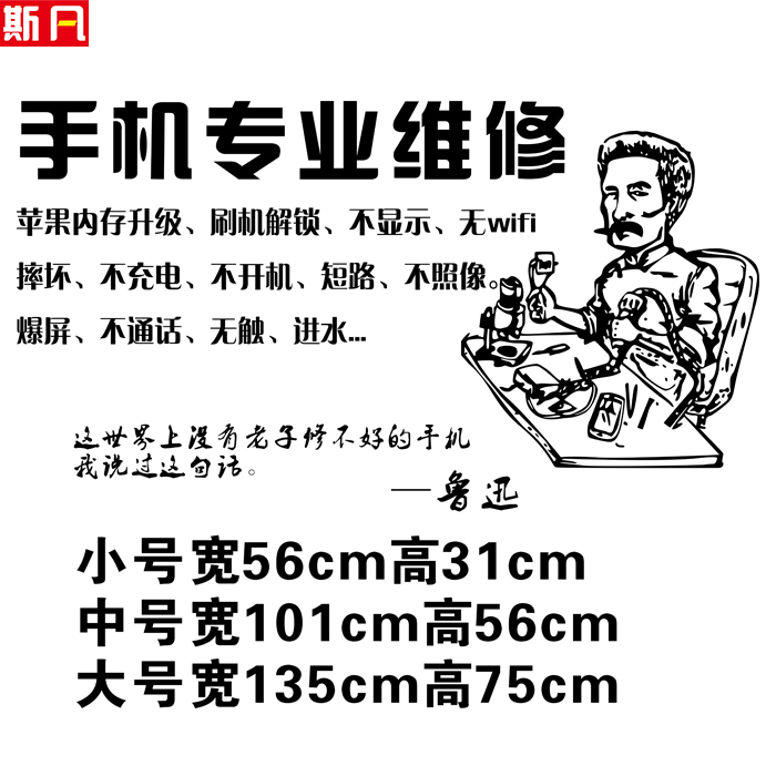 创意搞笑手机维修店广告贴纸电脑数码手机店装饰橱窗墙面布置墙贴