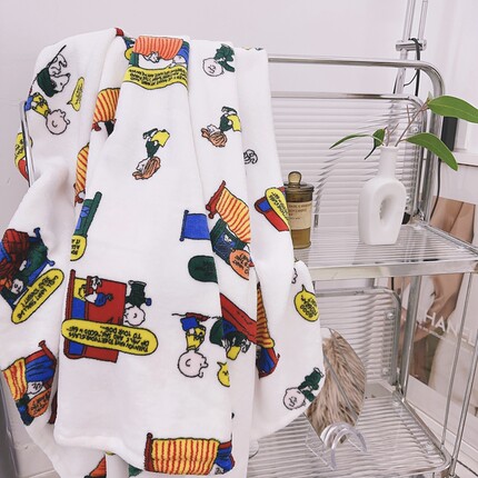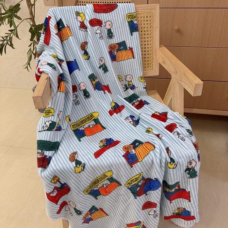 新款晚安史努比卡通印花毯子儿童毛毯 推车盖毯 幼儿园午睡细绒毯
