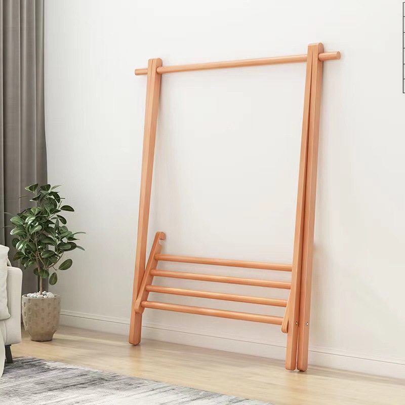 纯实木榉木可折叠衣帽架卧室简易挂衣架子多功能落地家用晾衣架