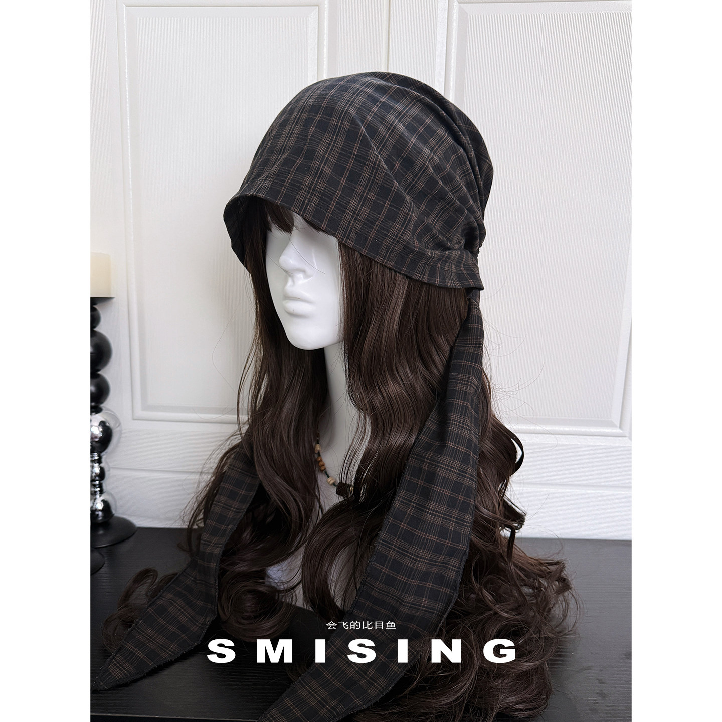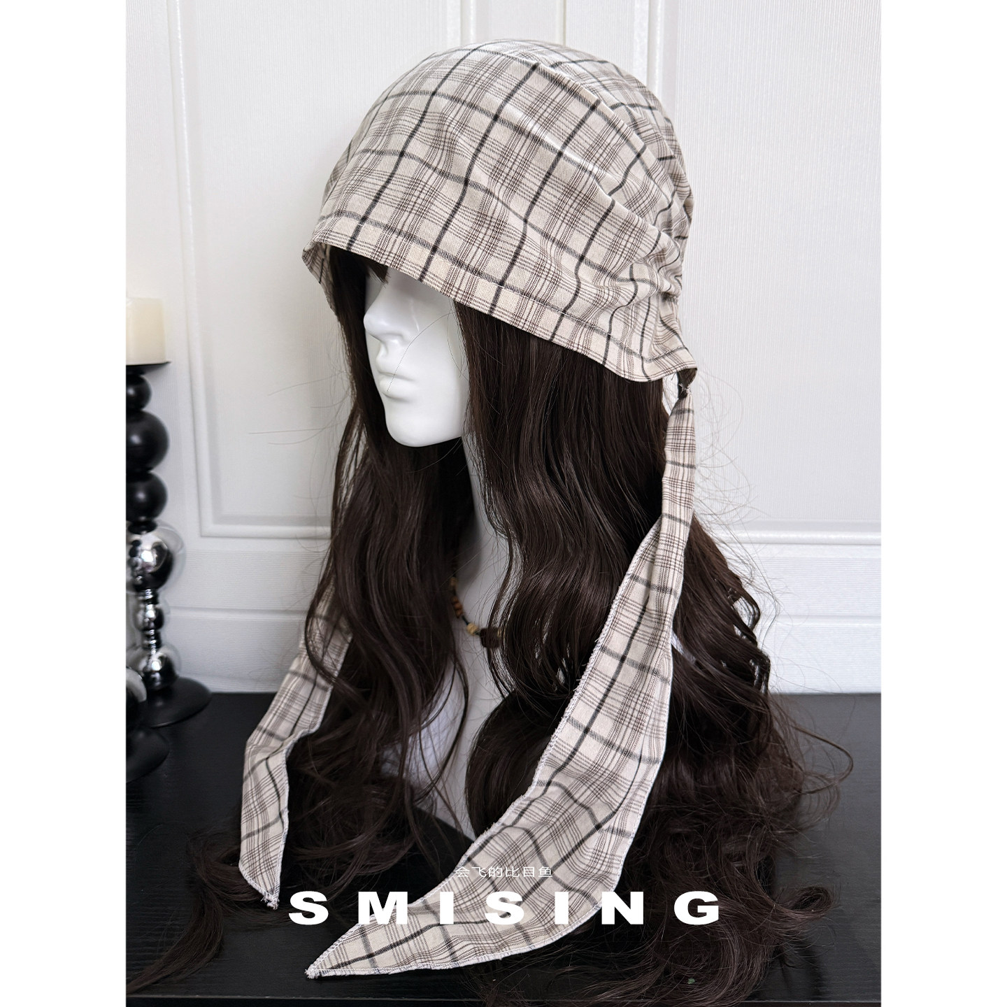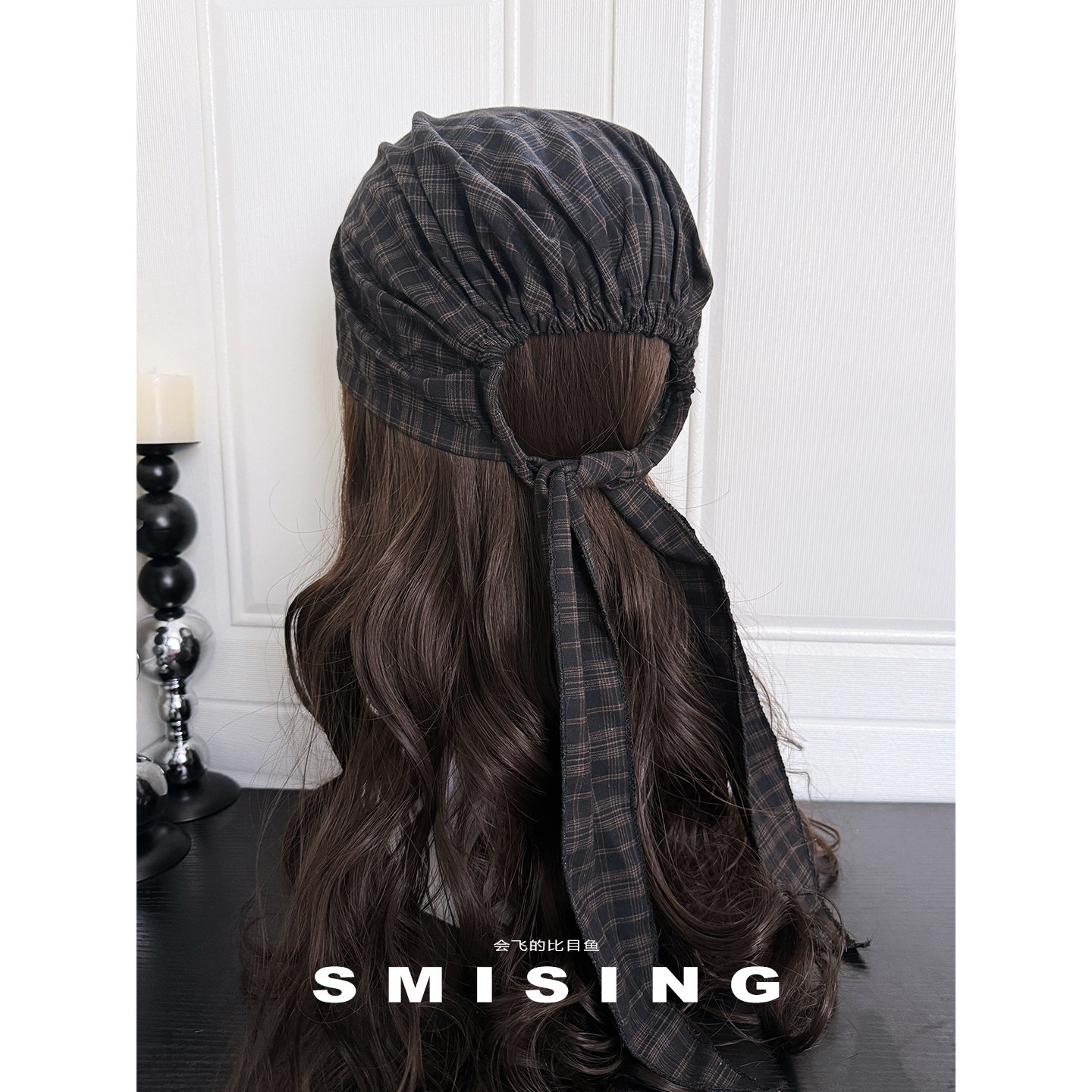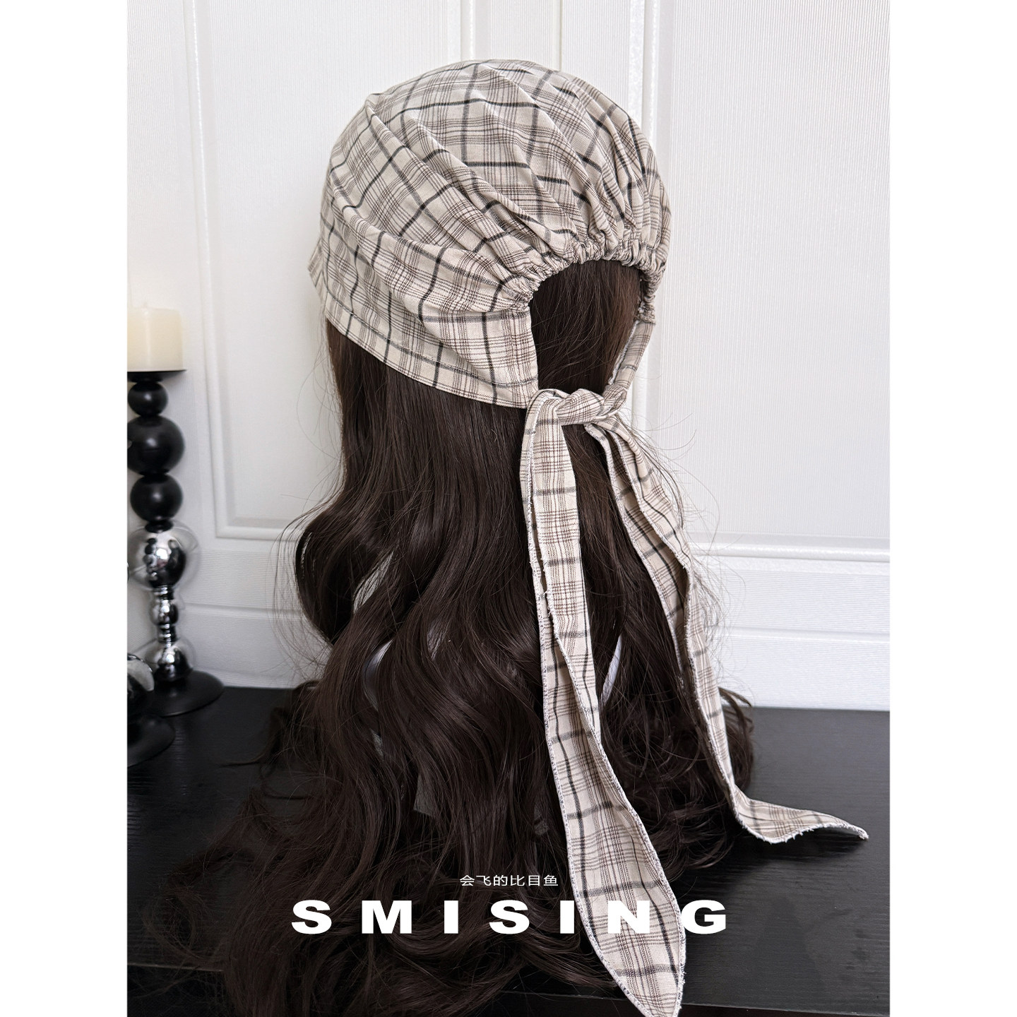 复古绑带格纹包头帽甜酷辣妹