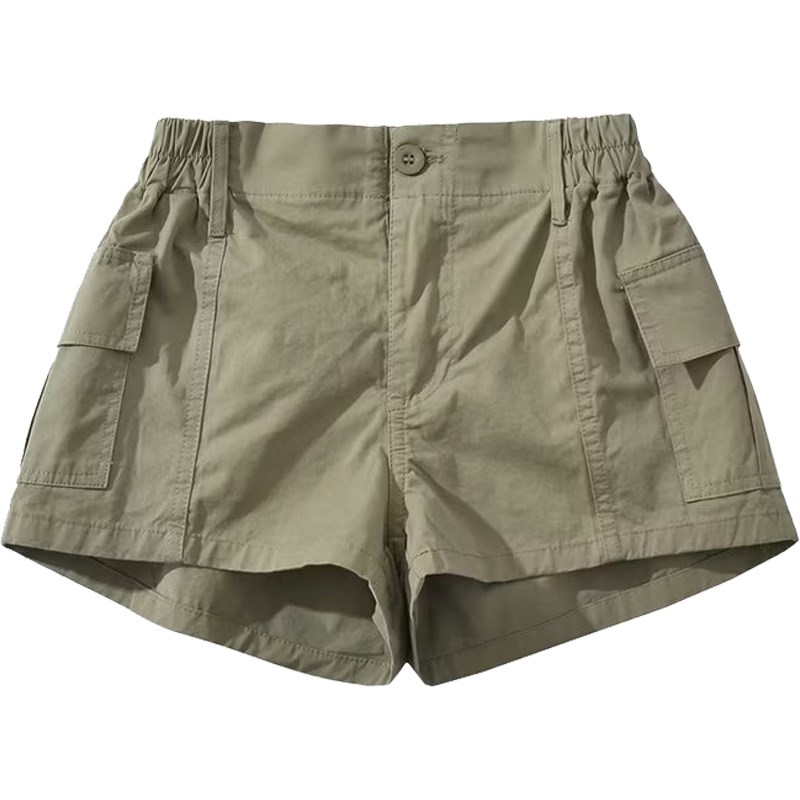 美式复古贴袋水洗工装风短裤腰间松紧辣妹风低腰夏季热裤百搭女裤