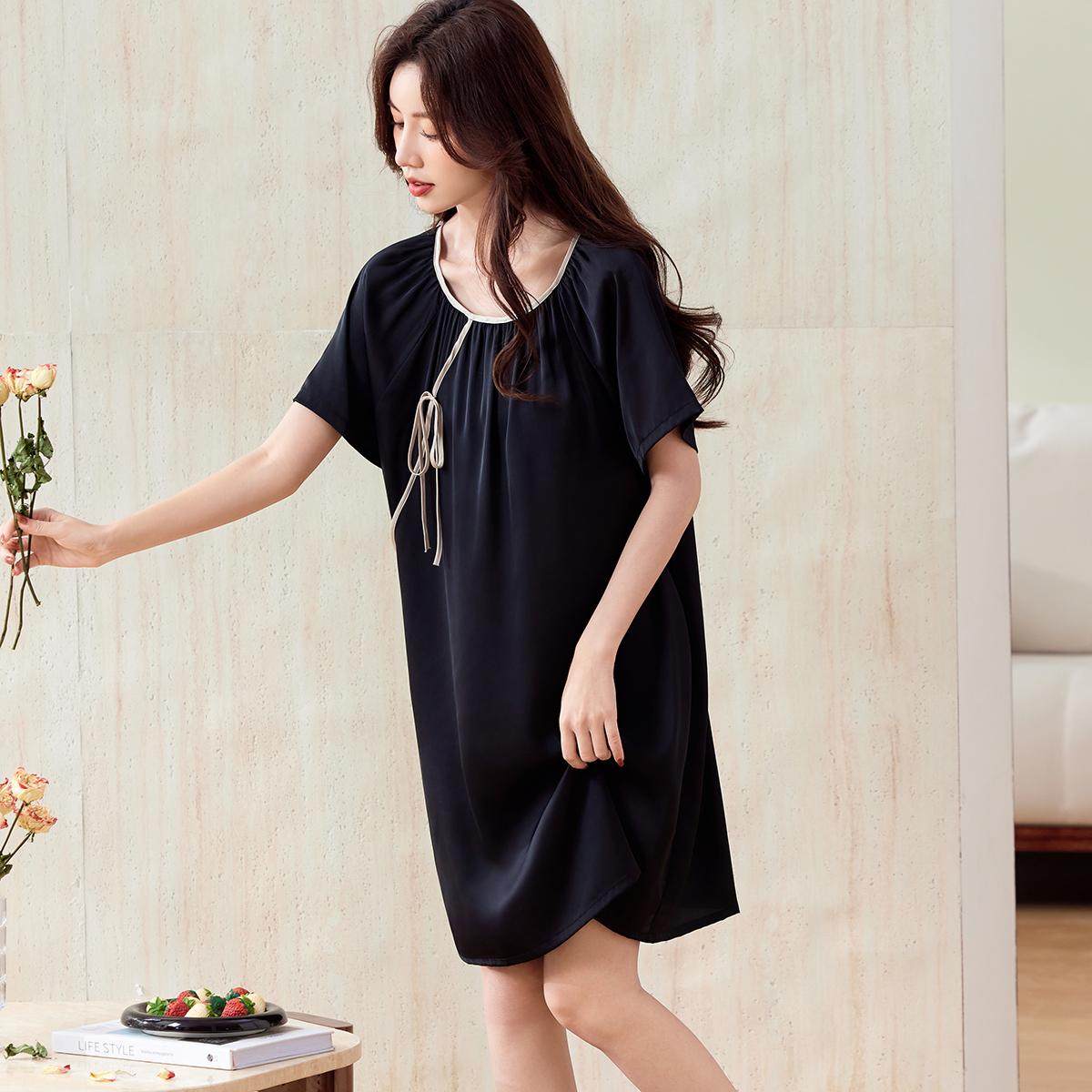 睡裙冰丝女款2025年新款夏季薄款短袖蝴蝶结睡衣家居服中式连衣裙