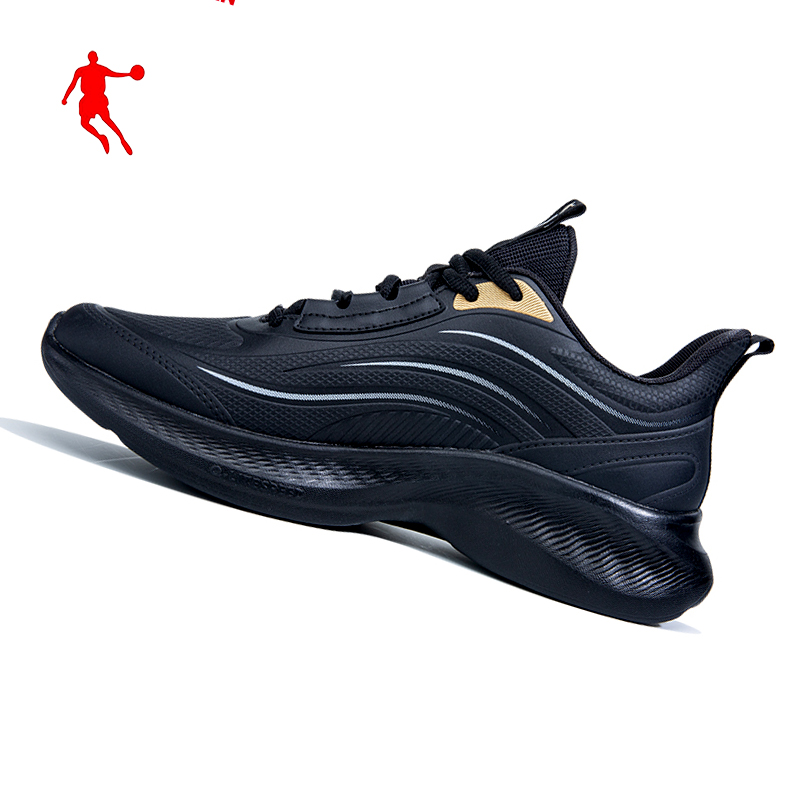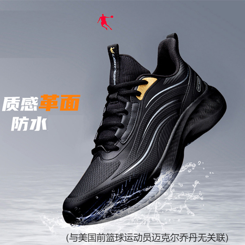 乔丹全黑色男鞋上班鞋冬款皮面防水运动鞋雨翼跑步鞋正品工作波鞋