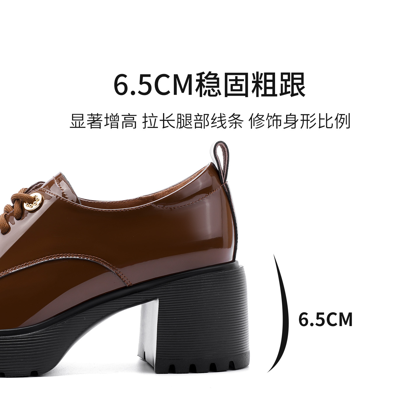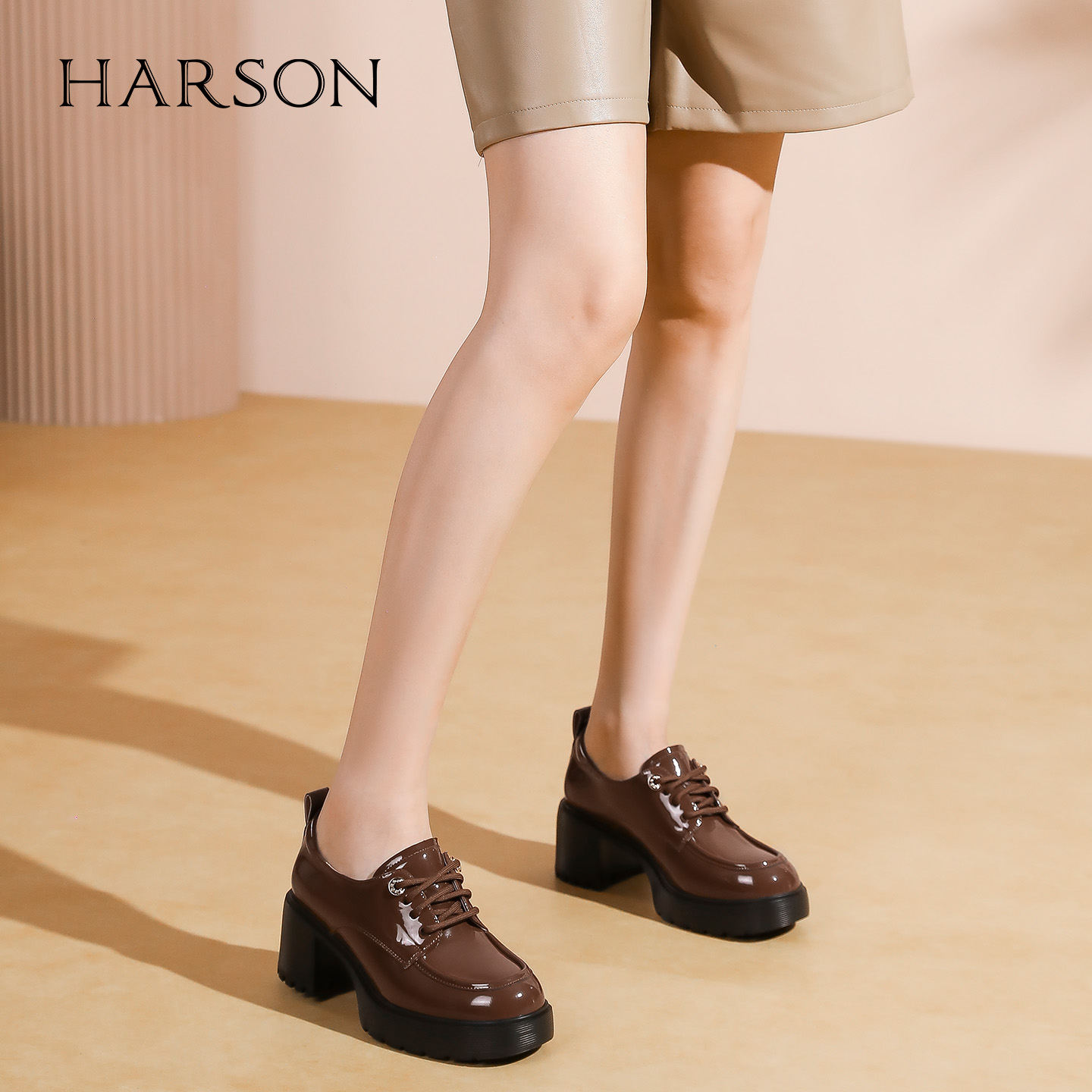 哈森/HARSON【爵士乐福鞋】25秋新款绑带棕色高跟皮鞋深口单鞋女