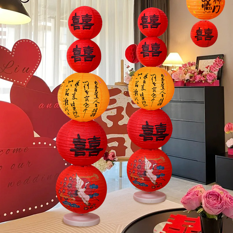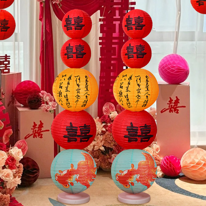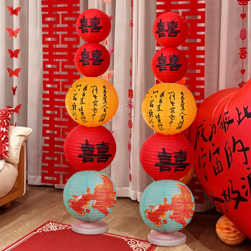 婚房布置订婚装饰喜字灯笼立柱