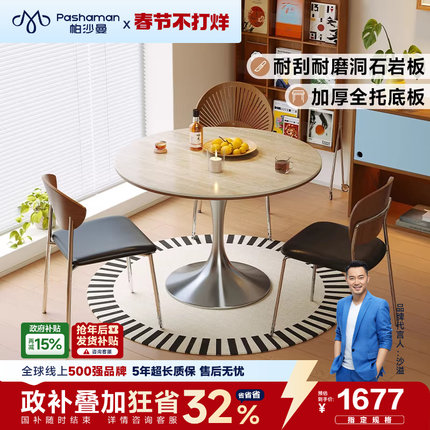 帕沙曼洞石岩板餐桌客厅家用小户型复古风设计师轻奢全托底板圆桌