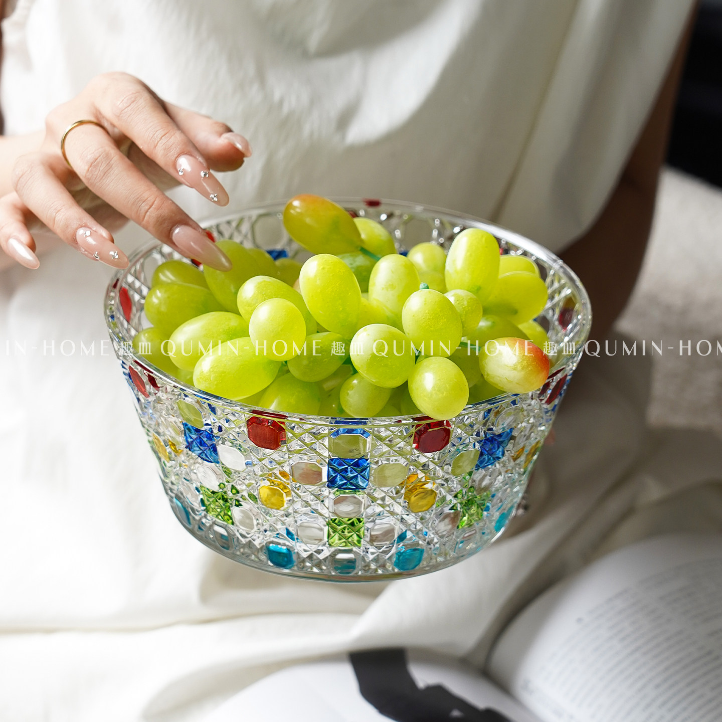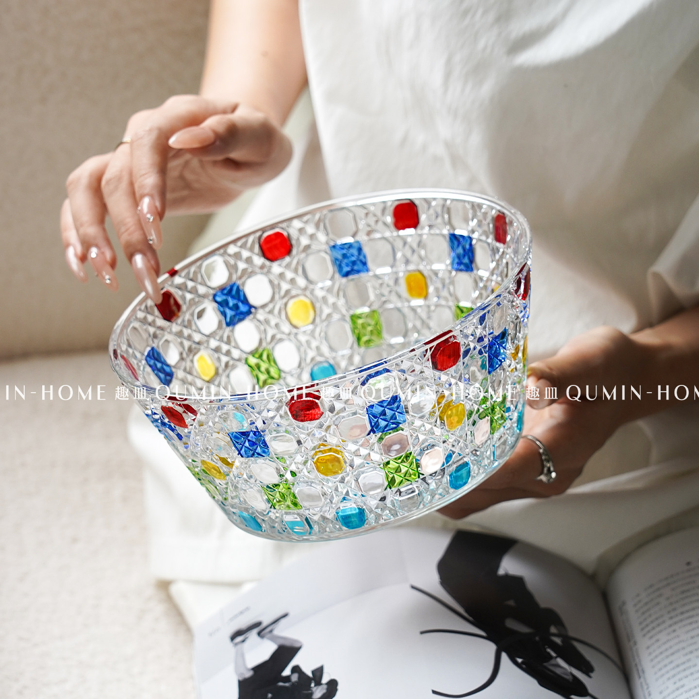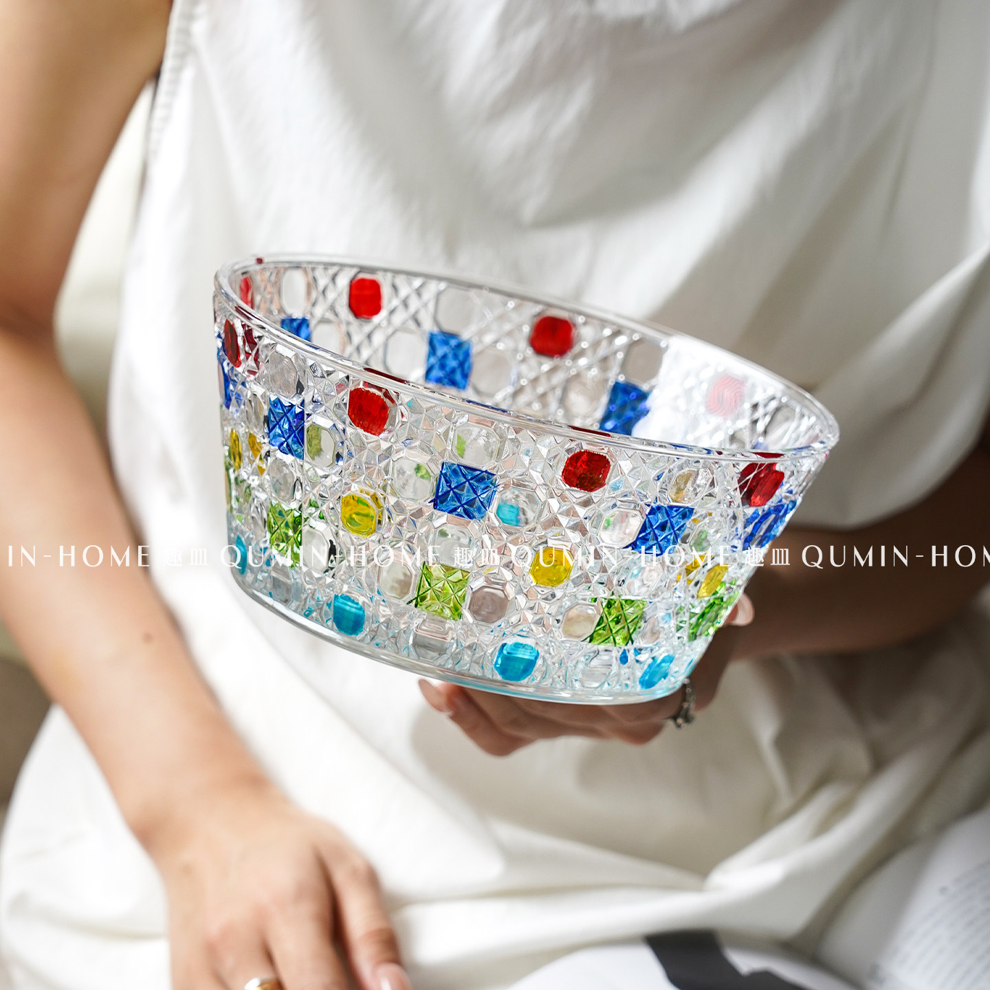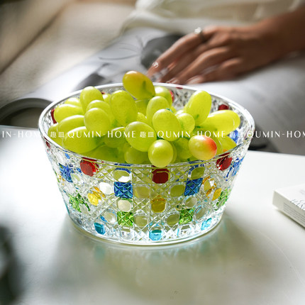 趣皿ins风玻璃干果盘高级感沙拉碗家用茶几客厅零食盘酸奶水果碗