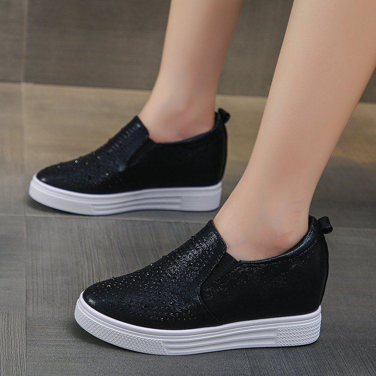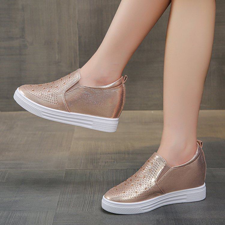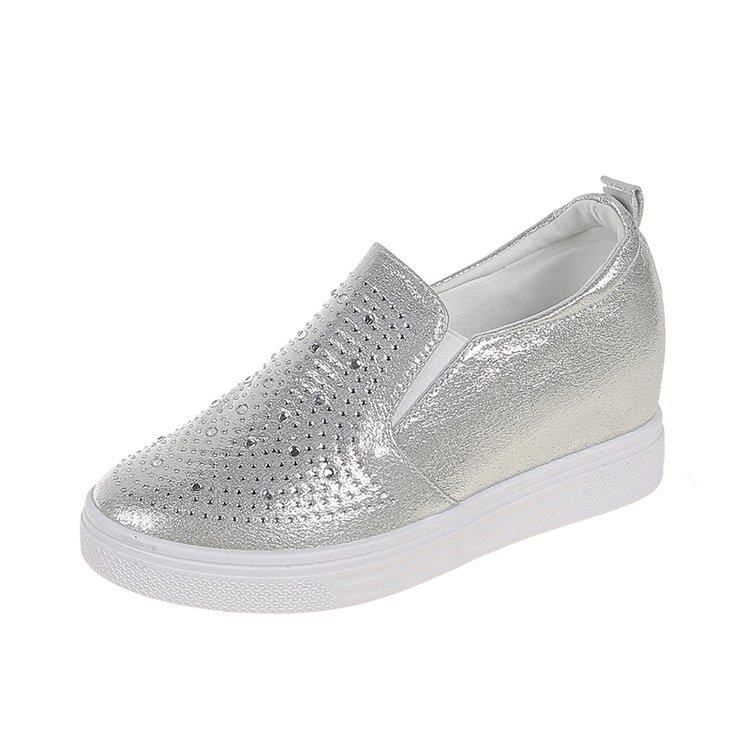 内增高女鞋小个子懒人单鞋2025春季新款一脚蹬软底银色运动休闲鞋