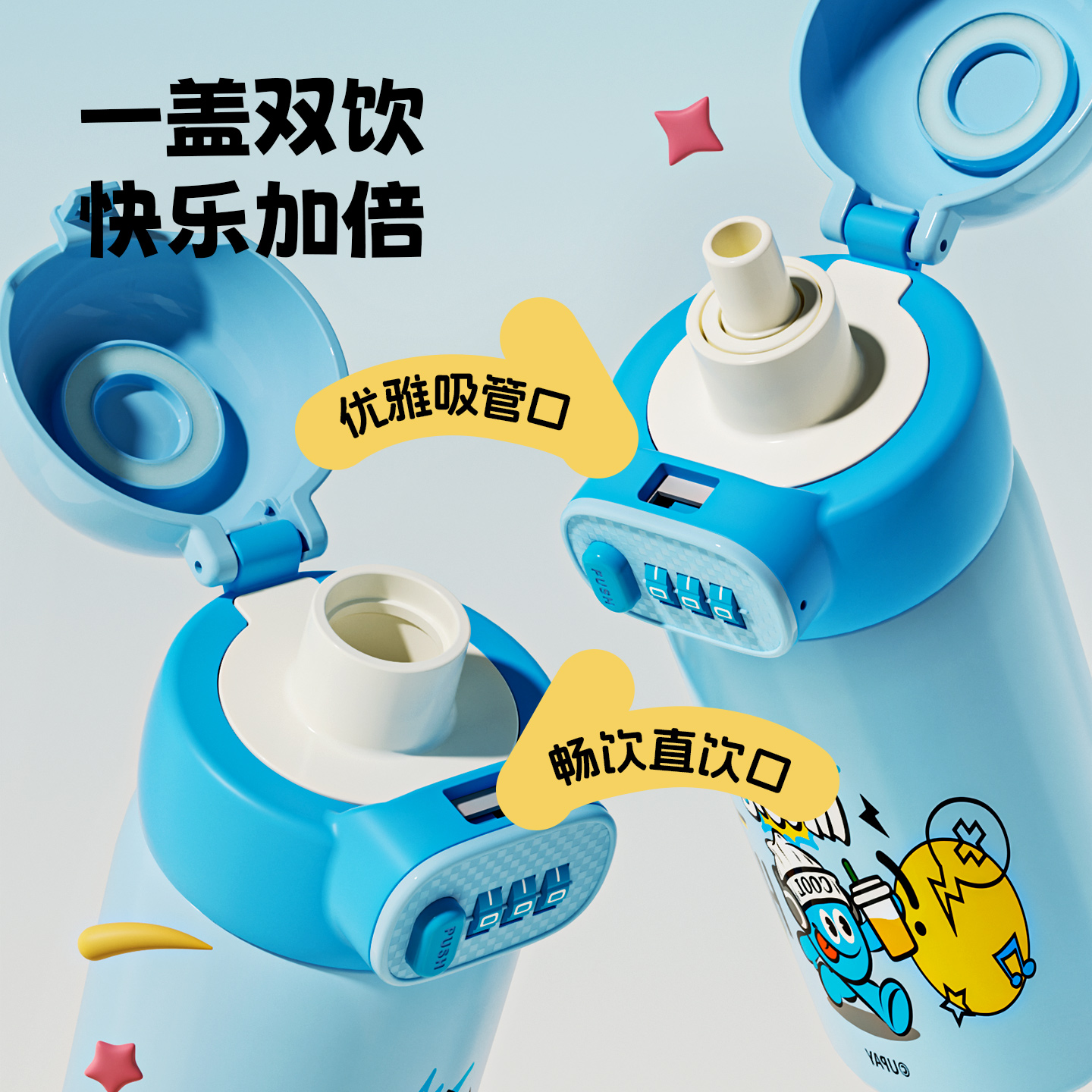 富全儿童保温杯密码锁指纹水杯小学生上学专用杯子男女孩吸管杯